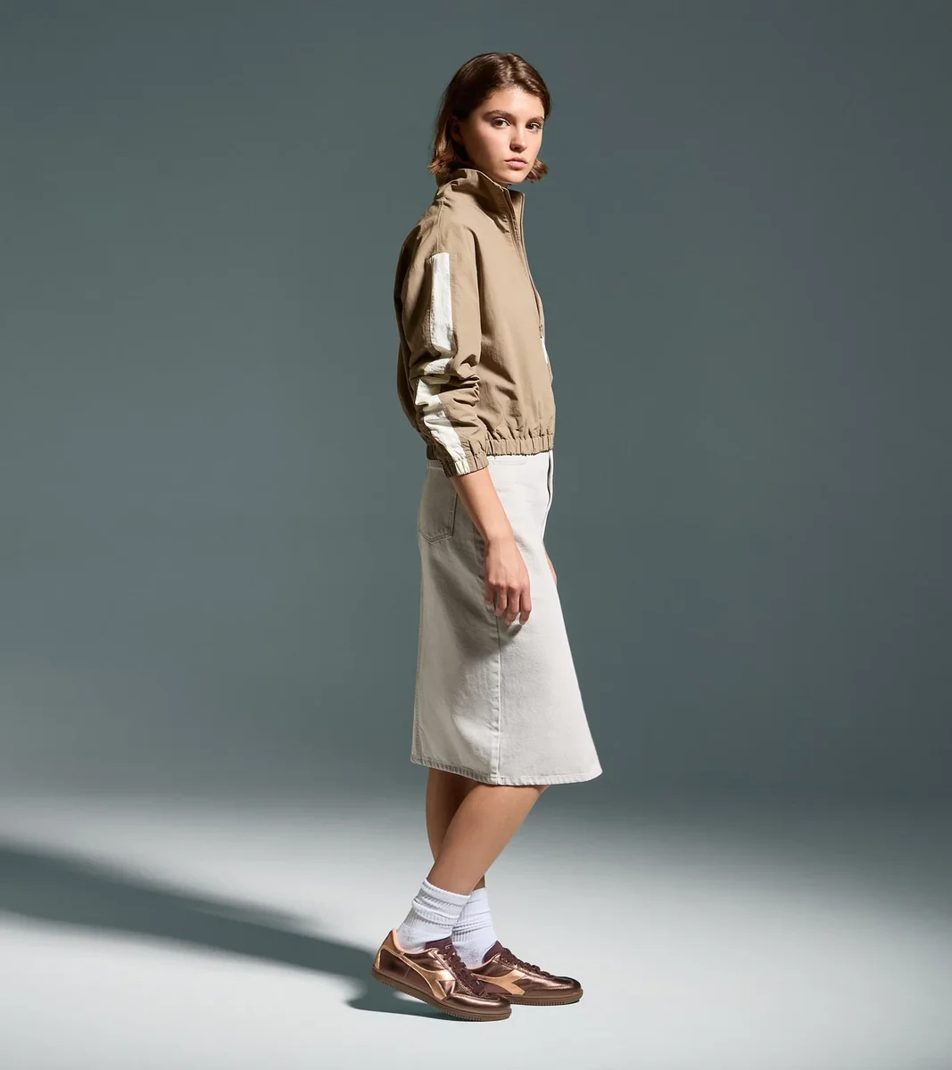 Diese Trainingsjacke für Damen verbindet Funktionalität nach dem Training mit einem cleanen Athleisure-Stil. Sie besteht aus mattem Taslan, ist leicht und dennoch schützend – ideal sowohl als Trainingsjacke als auch als Lifestyle-Kleidungsstück. Reguläre Passform mit leicht verkürztem Schnitt, durchgehendem Reißverschluss vorne und charakteristischem Diadora-Label auf der Rückseite.
