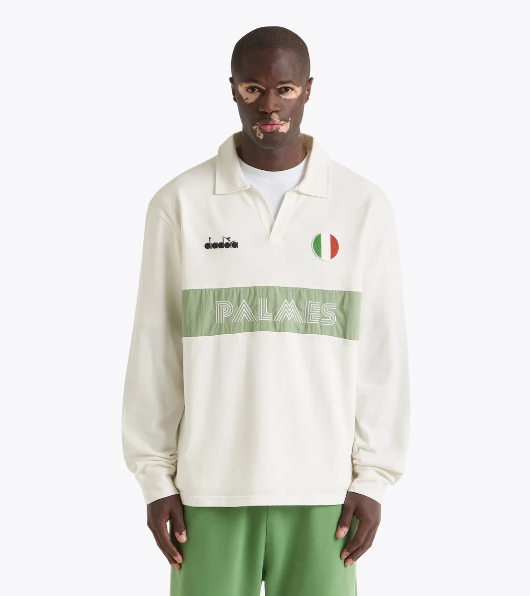 Die Legacy-Kollektion wird in Italien hergestellt und verfügt über ein spezielles Jacquard-Label, das die Zusammenarbeit zwischen Diadora und Palmes kennzeichnet