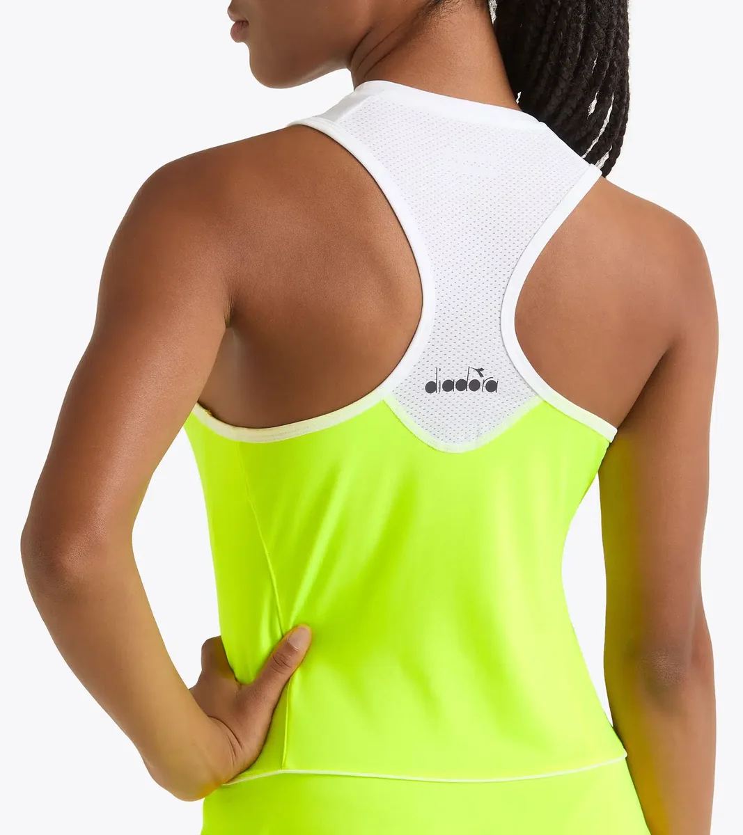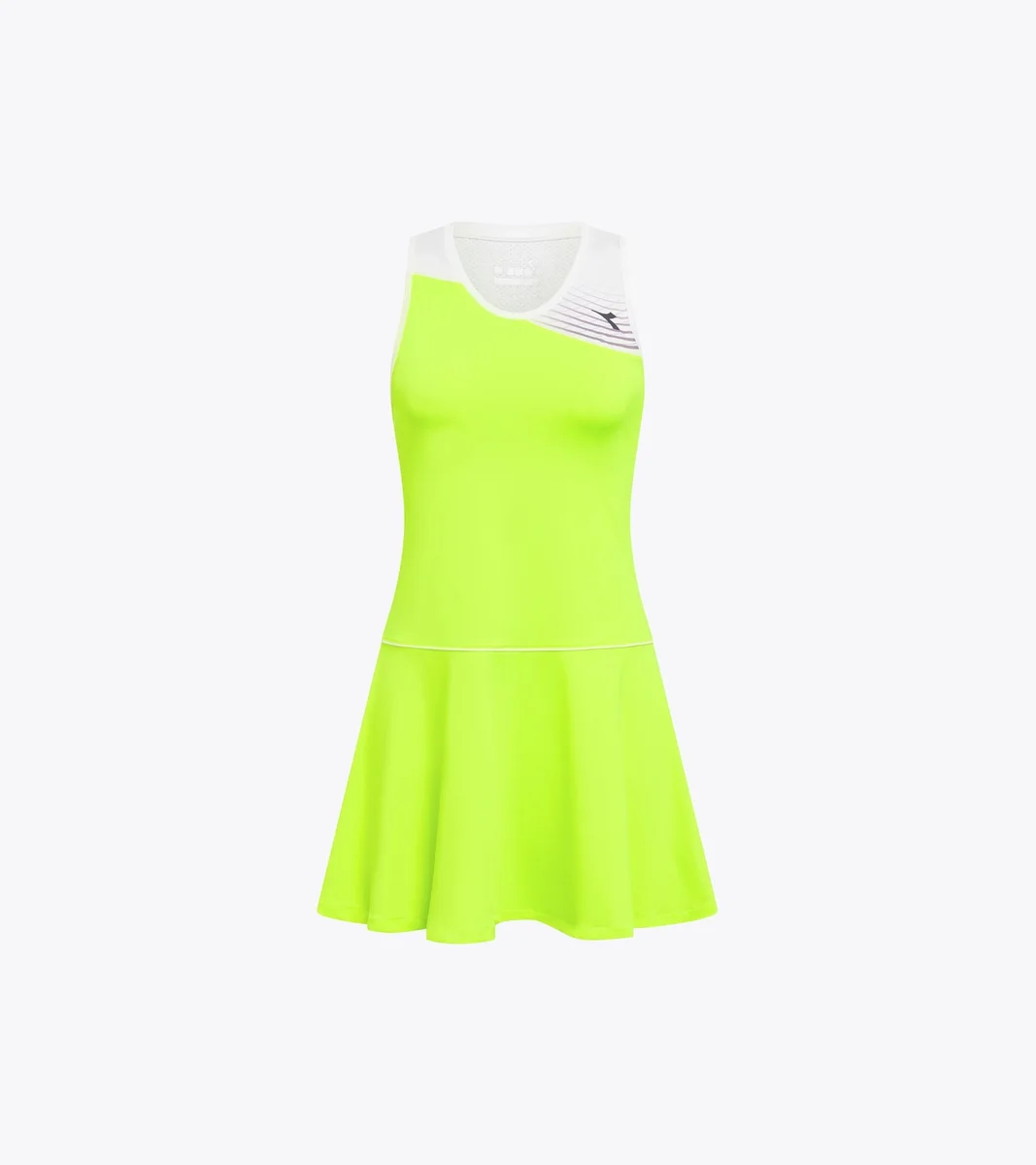 Weste-Kleid aus weichem, elastischem Polyester-Jersey mit Mesh-Einsatz am Rücken, niedriger Taille und ausgestelltem Rock. Perfekt für Ihre Matches und die intensivsten Ballwechsel.