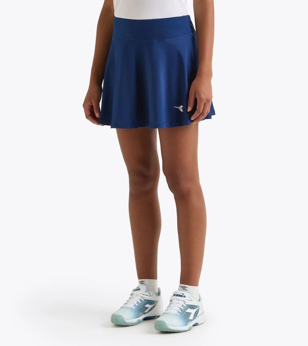 Ein ausgestellter Rock aus weichem, elastischem Polyester-Jersey mit hoher Taille und praktischer Innentasche. Verleihen Sie Ihren Trainingseinheiten einen Hauch von Stil.