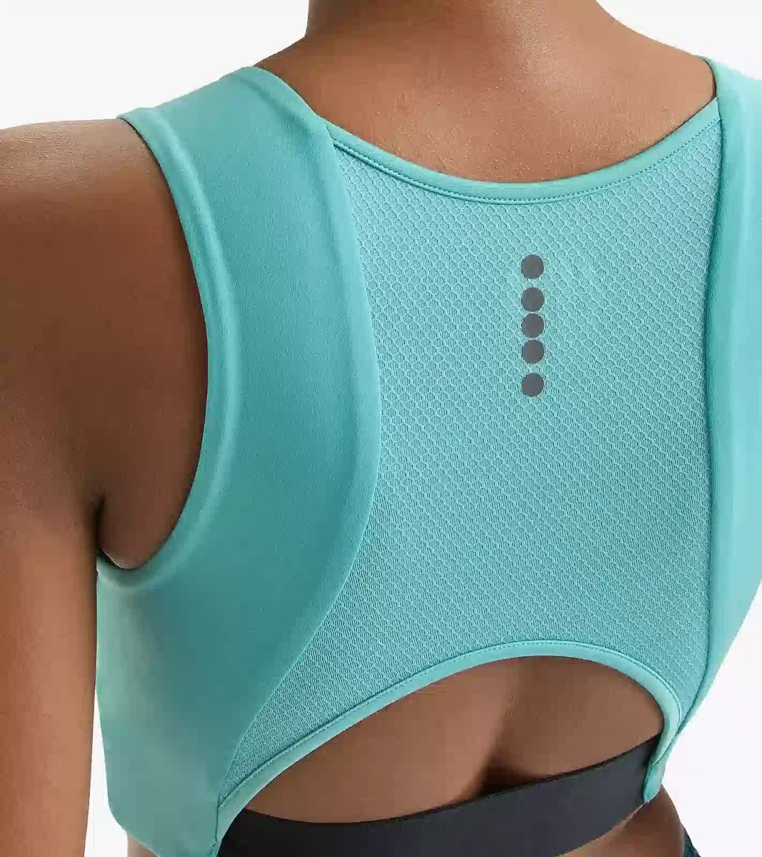 Mit diesem Sport-BH aus Polyamidgewebe mit Honey-Mesh-Einsätzen bleibt alles an seinem Platz. Ein zusätzlicher Mesh-Einsatz am Rücken sorgt in Kombination mit dem elastischen Band für verbesserte Atmungsaktivität und Tragekomfort. Dieses Laufshirt wurde entwickelt, um Ihnen während des Trainings optimalen Halt zu bieten. Es sorgt für einen sicheren und bequemen Sitz, sodass Sie sich ganz auf Ihre Leistung konzentrieren können.