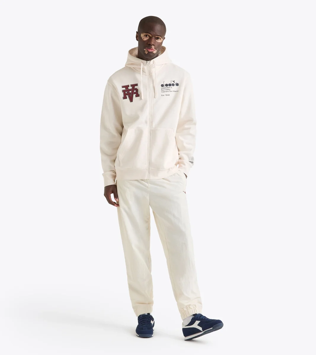 Ein warmer, funktioneller Hoodie für die Erholung nach dem Laufen und den Alltag. Hergestellt aus gebürsteter Baumwolle (80 %) mit verstellbarem Saum für eine individuelle Passform. Durchgehender Reißverschluss, geräumige Kapuze und ein auffälliges Logo im College-Stil auf der Brust – klassische Laufenergie, ganz nach Ihrem Geschmack.
