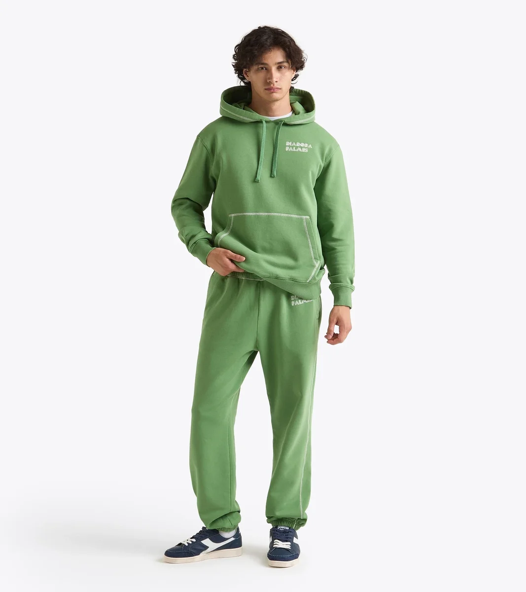 Der Legacy Hoodie bringt die Ästhetik des Tennisplatzes auf die Straße – und darüber hinaus. Er besteht aus 100 % gebürstetem Baumwollfleece, hat eine zeitlose Silhouette und ist mit Kontrastnähten versehen, die die gestickte „Palmes Diadora”-Signatur und das Logo auf der Rückseite widerspiegeln. Eine übergroße Kängurutasche wurde ebenfalls maßgeschneidert. Die Stonewash-Verarbeitung verleiht jedem Stück eine einzigartige Patina, während ein individuelles Jacquard-Label die Zusammenarbeit besiegelt. Die neue Legacy-Kollektion von Nikolaj Hansson, Gründer von Palmes Die Kollektion ist inspiriert von den historischen Archiven von Diadora, der Geschichte des Sports und dem Design von Made in Italy-Kleidung. Gebürsteter Fleece-Hoodiep>