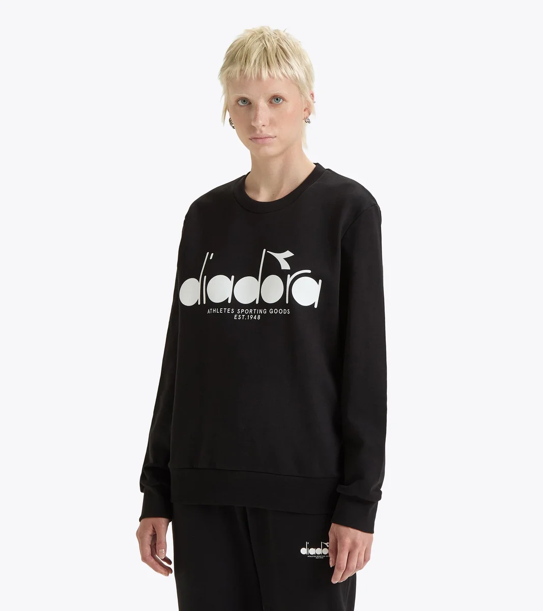 Praktisch, leicht, minimalistisch. Das Sweatshirt Crew Logo eignet sich perfekt als Pullover nach dem Spiel, passt aber zu jedem Look. Brechen Sie ein elegantes Outfit mit Ihrer Lieblingsfarbe auf oder machen Sie es zum Mittelpunkt Ihres Looks. Das kontrastierende Diadora-Logo steht dabei im Mittelpunkt.