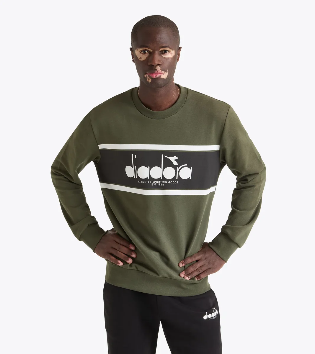 Praktisch, leicht, minimalistisch. Das Sweatshirt Crew Logo eignet sich perfekt als Pullover nach dem Spiel, passt aber zu jedem Look. Brechen Sie ein elegantes Outfit mit Ihrer Lieblingsfarbe auf oder machen Sie es zum Mittelpunkt Ihres Looks. Das kontrastierende Diadora-Logo steht dabei im Mittelpunkt.