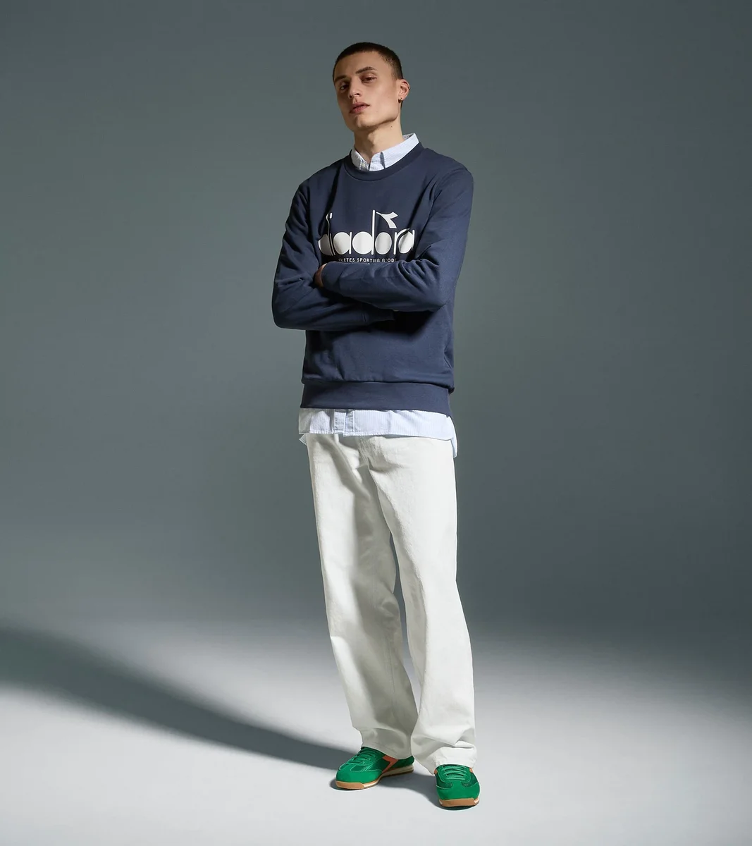 Praktisch, leicht, minimalistisch. Das Sweatshirt Crew Logo eignet sich perfekt als Pullover nach dem Spiel, passt aber zu jedem Look. Brechen Sie ein elegantes Outfit mit Ihrer Lieblingsfarbe auf oder machen Sie es zum Mittelpunkt Ihres Looks. Das kontrastierende Diadora-Logo steht dabei im Mittelpunkt.