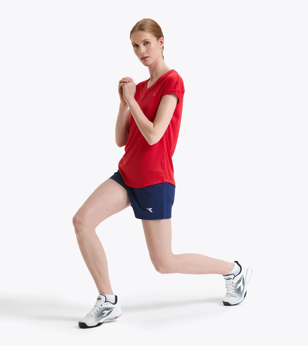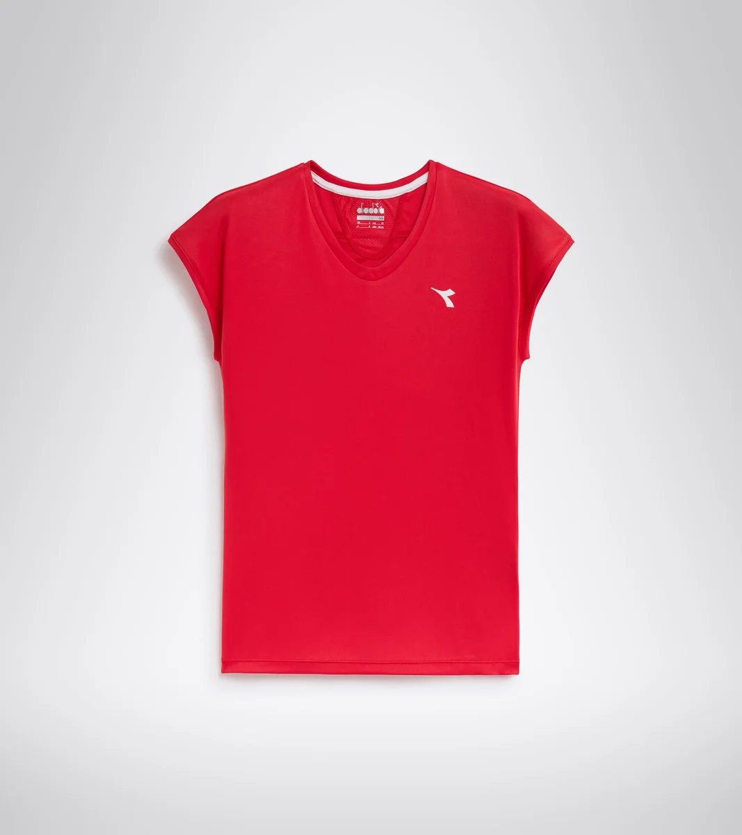 T-Shirt aus leichtem, atmungsaktivem Material mit weitem Armloch und abgerundetem Saum. Tragen Sie es bei Ihren intensivsten Trainingseinheiten, um Ihre Haut trocken zu halten.