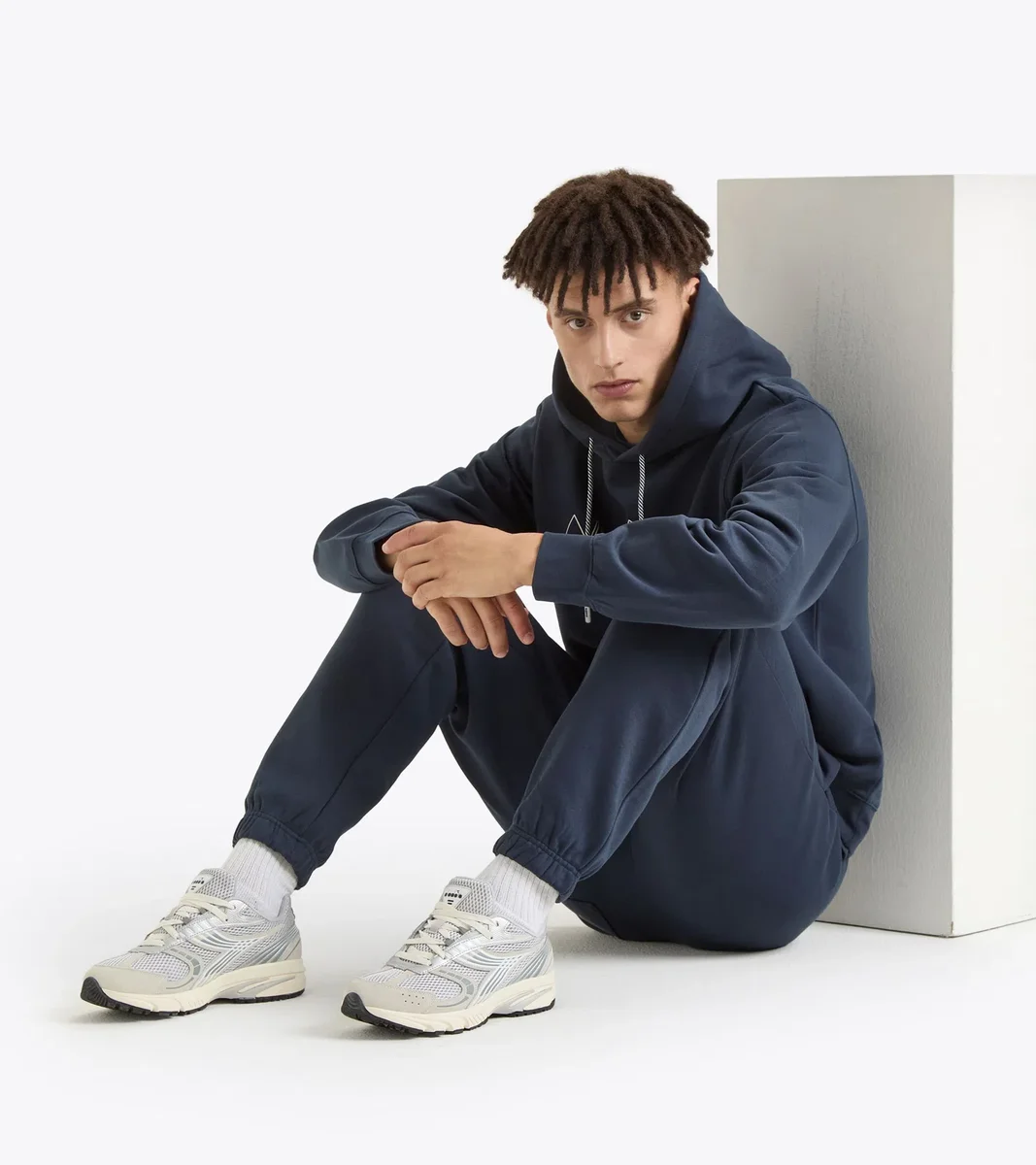 Gesticktes Diadora-Logo, spezieller Kordelzug, inspiriert von Trail-Bekleidung, und Metallösen. Hergestellt aus 70 % weicher, gebürsteter Baumwolle und 30 % recyceltem Polyester.