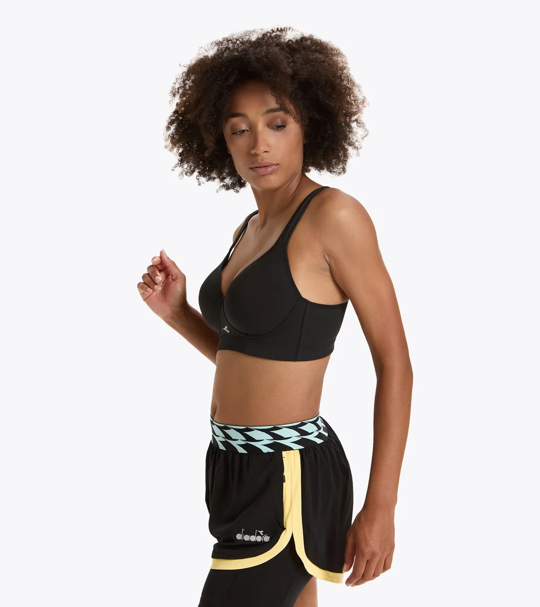 Hochleistungs-Sport-BH, perfekt für Sportarten mit hoher Intensität. Atmungsaktives Polyester-Jersey mit internem Schweißband, auch für größere Größen. Geformter, verstärkter Innencup und gepolsterte Träger für eine bequeme, optimale Passform.