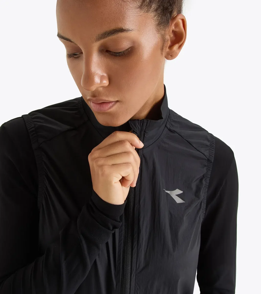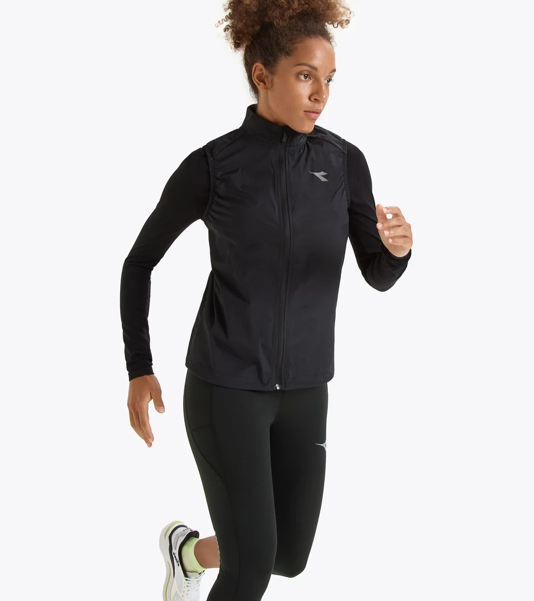 Wenn Sie diesen Schutz während Ihres Laufs nicht mehr benötigen, verstauen Sie die Weste in der hinteren Reißverschlusstasche und laufen Sie ohne Ablenkungen weiter.