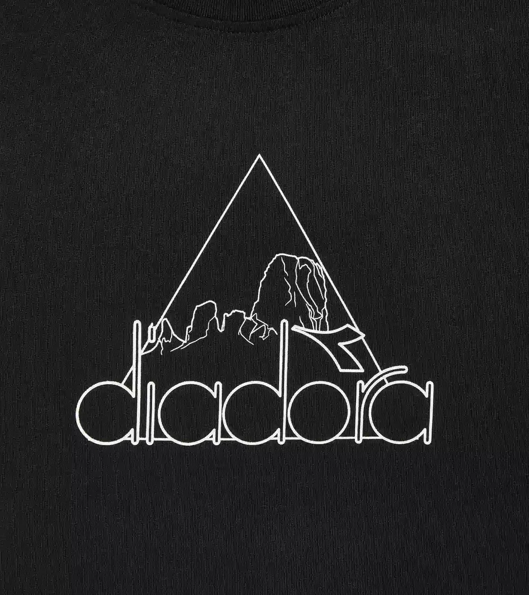 Die wilde Seite von Cortina. Das T-Shirt SS Route fängt die authentische Essenz der Dolomiten ein. Dieses T-Shirt aus 50 % recyceltem Baumwolljersey und 50 % 220-Gramm-Baumwolle ist Ihr Lieblingsstück für den Herbst in den Bergen oder das perfekte Kleidungsstück, um sich nach einer Wanderung in Cortina zu entspannen.