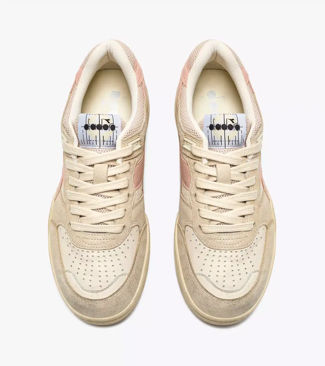 Ein typisches Detail der Diadora Heritage Sneakers: Die Stonewash-Behandlung macht das Leder weicher.