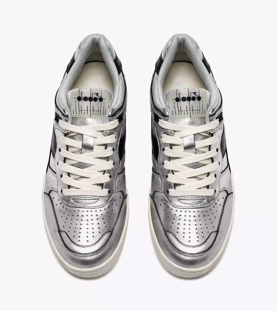 Der raffinierte und elegante B.560 Silver Used WN ist ein Damen-Sneaker aus laminiertem Leder mit Details aus Vollnarbenleder am Diadora-Logo und an der Rückseite. Mit Stonewash-Behandlung und Wachs veredelt.