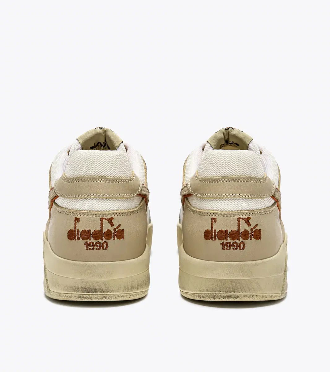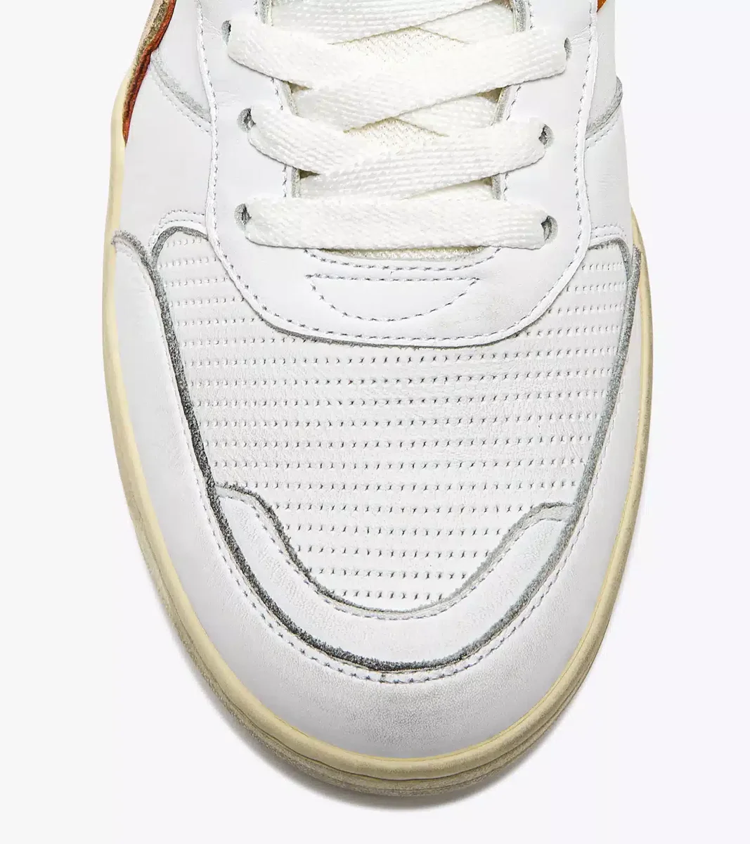 Hergestellt aus Vollnarbenleder, Wildleder und weichem Canvas. Mikroperforierte Lederdetails auf der Zunge. Stonewash. Ein typisches Detail der Diadora Heritage Sneakers. Die Stonewash-Behandlung macht das Leder weicher. Wachs. Ein typisches Finish der Diadora Heritage Sneakers. Das Wachs verstärkt die natürliche Farbe des Leders und schützt es, wodurch es widerstandsfähiger gegen Wasser wird. Der Wachsprozess von Diadora hinterlässt Unvollkommenheiten, die jedes Paar Sneakers einzigartig machen.