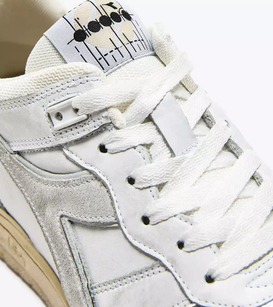 Hergestellt aus Vollnarbenleder, Wildleder und weichem Canvas. Mikroperforierte Lederdetails auf der Zunge. Stonewash. Ein typisches Detail der Diadora Heritage Sneakers. Die Stonewash-Behandlung macht das Leder weicher. Wachs. Ein typisches Finish der Diadora Heritage Sneakers. Das Wachs verstärkt die natürliche Farbe des Leders und schützt es, wodurch es widerstandsfähiger gegen Wasser wird. Der Wachsprozess von Diadora hinterlässt Unvollkommenheiten, die jedes Paar Sneakers einzigartig machen.