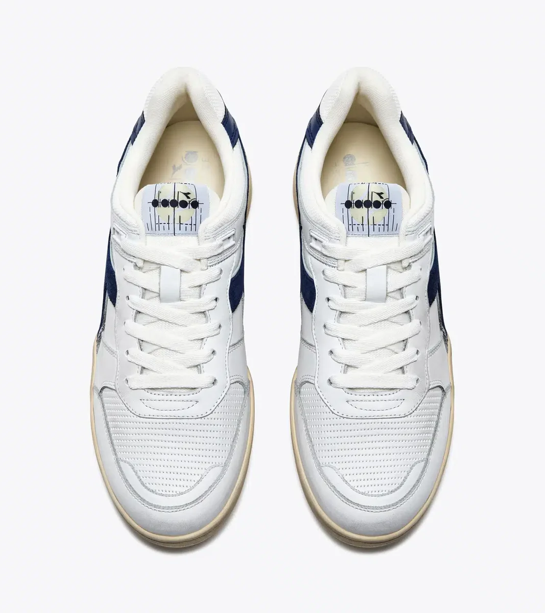 Hergestellt aus Vollnarbenleder, Wildleder und weichem Canvas. Mikroperforierte Lederdetails auf der Zunge. Stonewash. Ein typisches Detail der Diadora Heritage Sneakers. Die Stonewash-Behandlung macht das Leder weicher. Wachs. Ein typisches Finish der Diadora Heritage Sneakers. Das Wachs verstärkt die natürliche Farbe des Leders und schützt es, wodurch es widerstandsfähiger gegen Wasser wird. Der Wachsprozess von Diadora hinterlässt Unvollkommenheiten, die jedes Paar Sneakers einzigartig machen.