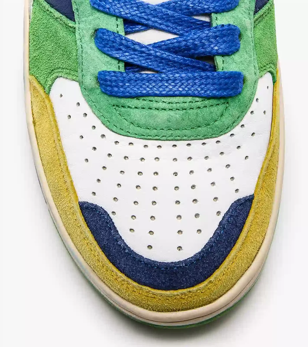 Durch die charakteristische Stonewash-Behandlung und eine dezente Wachsbehandlung erhalten diese Sneaker einen unverwechselbaren Used-Effekt, der ihren Reiz noch verstärkt.