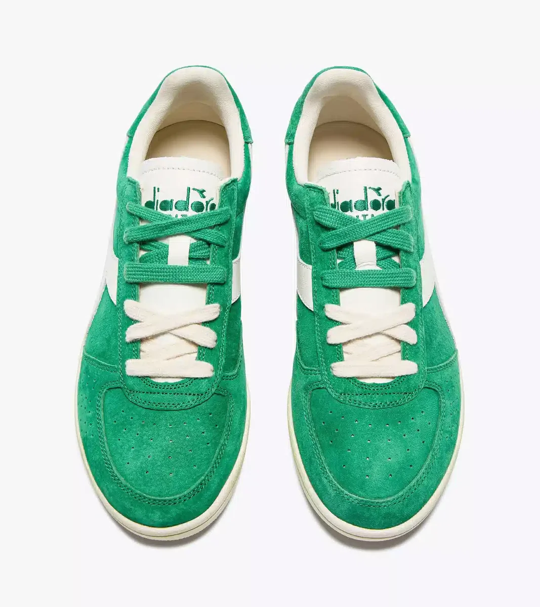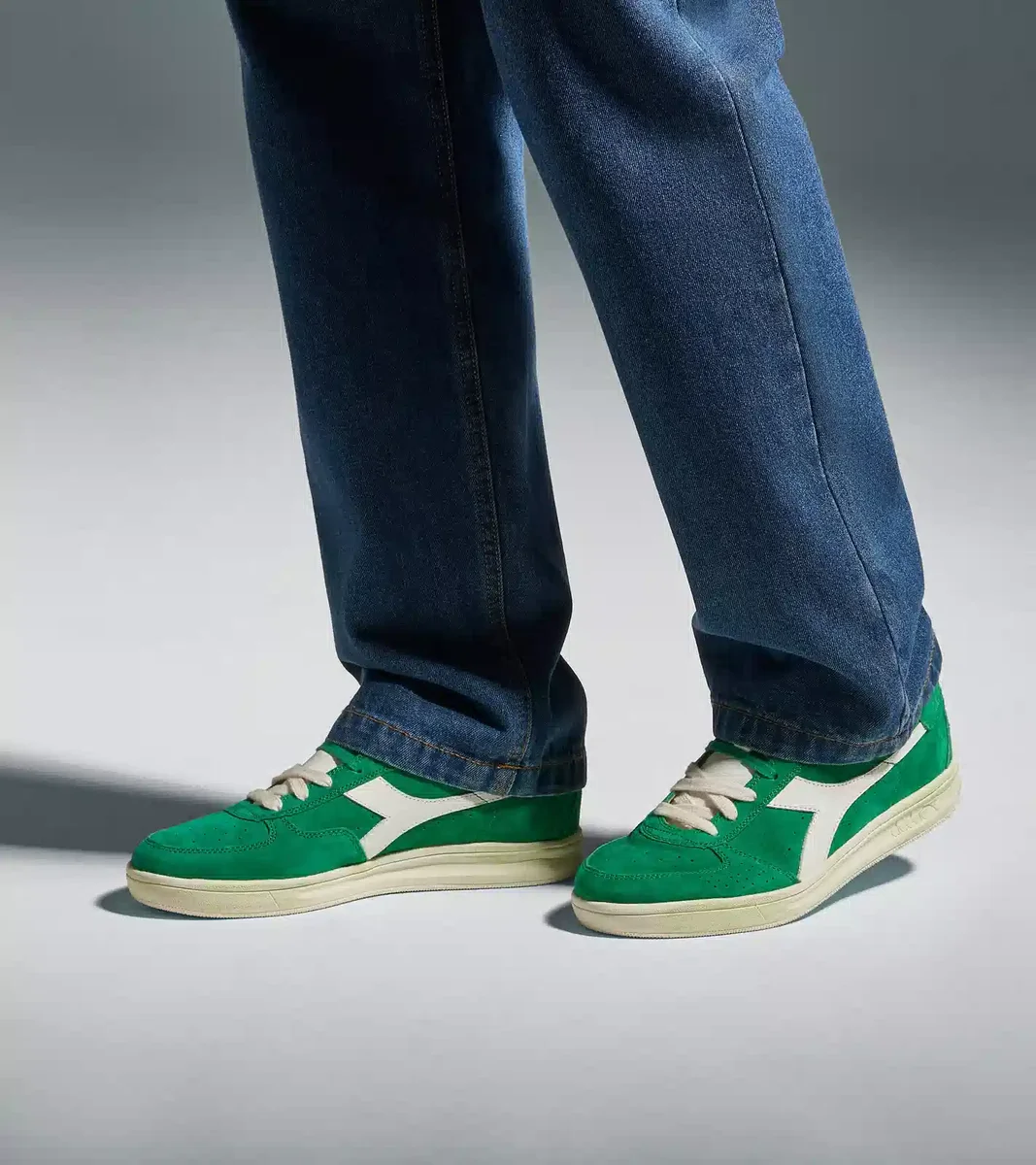 Zeitlos wie eh und je, hatte B.Elite seine goldene Ära – den Beginn der Siege auf Rasenplätzen. Wir ehren dieses Erbe mit dieser speziellen grünen Edition, die aus Wildleder gefertigt und mit einer einzigartigen Wachsbeschichtung behandelt wurde, die dem Schuh eine charakteristische grüne Patina verleiht.