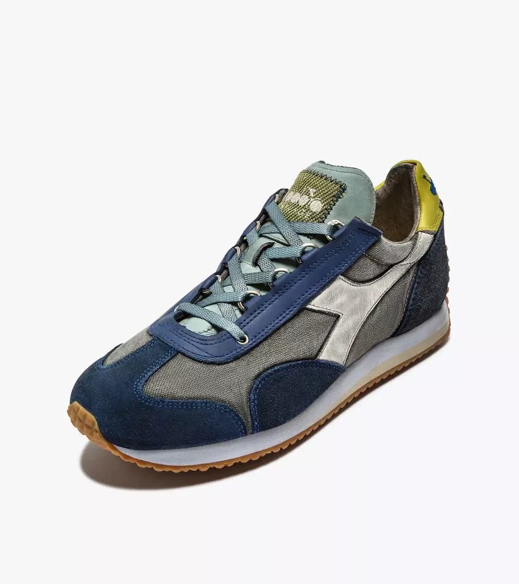 Laufmodell im Stil der 70er Jahre, direkt aus dem Diadora-Archiv von 1975. Ikonische Details wie die Metallösen sind dem ersten Diadora-Sportschuh nachempfunden. Hochwertige Materialien Aus Canvas und Wildleder, mit Zunge aus Leder. Stonewash Ein typisches Detail der Diadora Heritage-Sneaker: Die Stonewash-Behandlung macht das Leder weicher. Dirty-Effekt