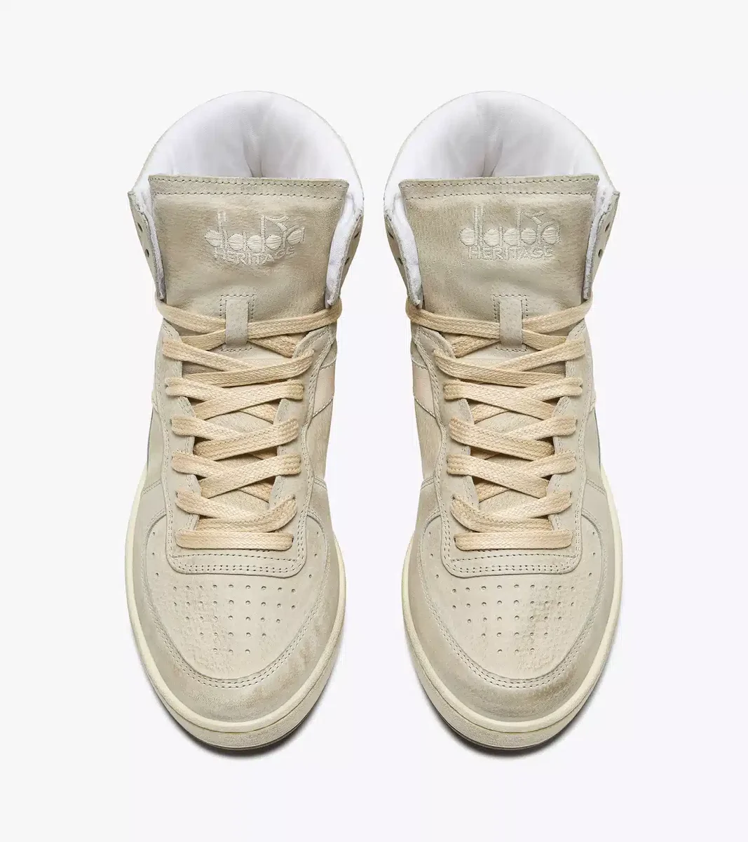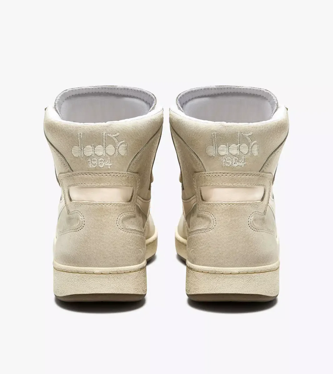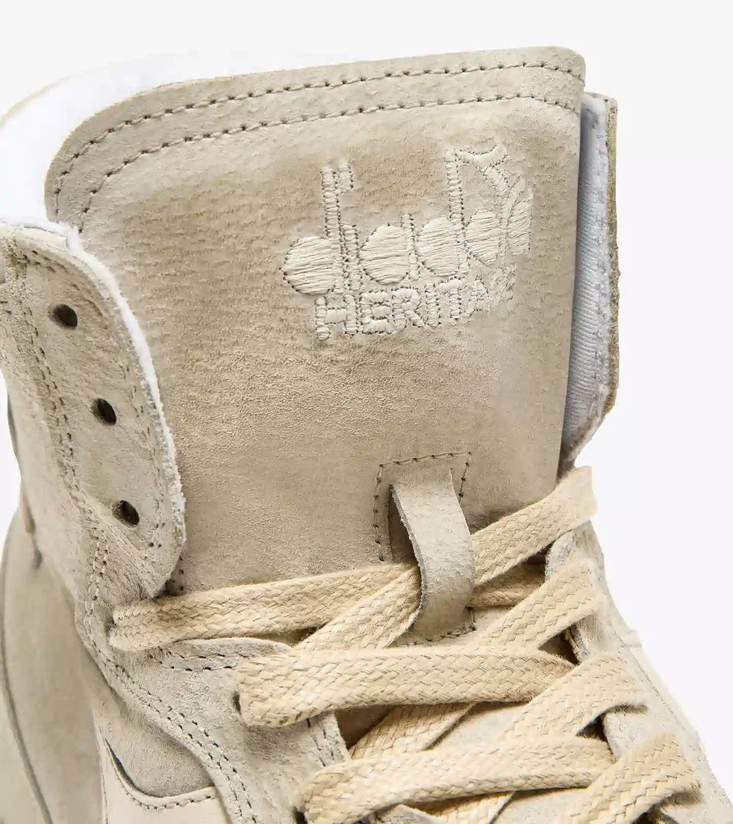 MI Basket Suede Used, ein Retro-Basketballmodell aus der Heritage-Kollektion der Unisex-Sneaker von Diadora. Obermaterial aus hochwertigem Schweinsleder mit Stonewash- und Wachsbehandlung.