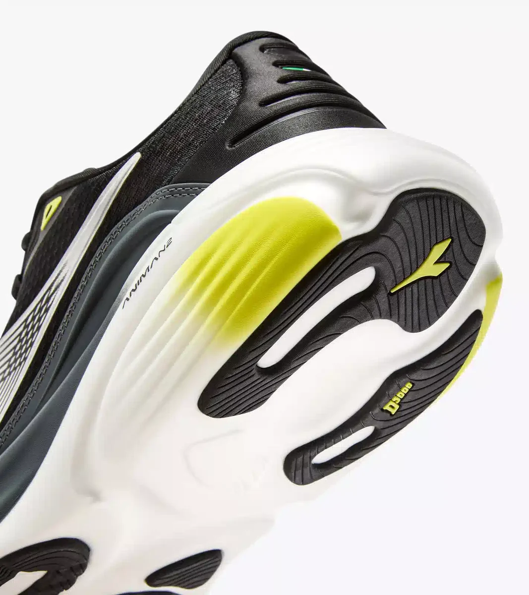 Dämpfung, Reaktionsfähigkeit und Leichtigkeit. Anima N2 ist die neue Diadora-Technologie in EVA SCF (Super Critical Foaming), die die Rückfederung der Zwischensohle um 40 % erhöht und gleichzeitig ihr Gewicht um 40 % reduziert.p>