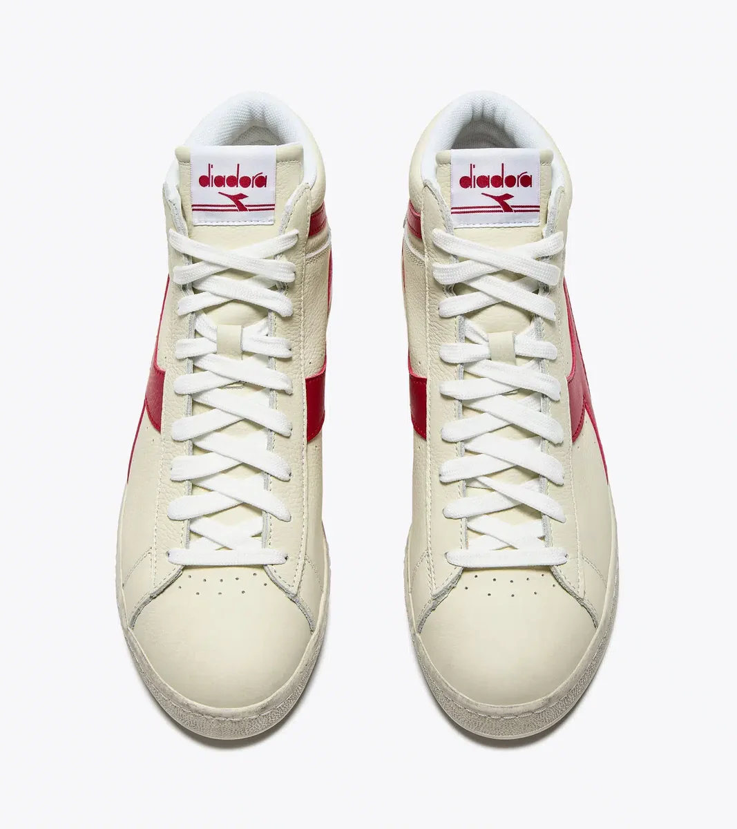 Das ikonische Modell Game L High ist aus hochwertigem Leder mit Wachsbehandlung gefertigt. Wie alle Ikonen von Diadora besticht dieser Schuh durch seine sportliche Ästhetik und seinen zeitlosen Stil, der zu jedem Anlass passt. Unisex-Modell mit kontrastierendem 5-Ball-Logo und Fregio-Detail.
