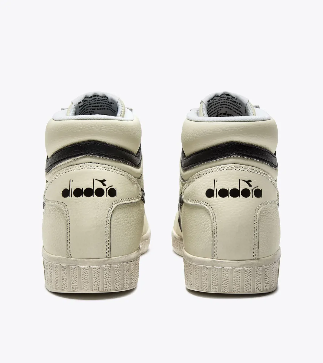 Das ikonische Modell Game L High ist aus hochwertigem Leder mit Wachsbehandlung gefertigt. Wie alle Ikonen von Diadora besticht dieser Schuh durch seine sportliche Ästhetik und seinen zeitlosen Stil, der zu jedem Anlass passt. Unisex-Modell mit kontrastierendem 5-Ball-Logo und Fregio-Detail.
