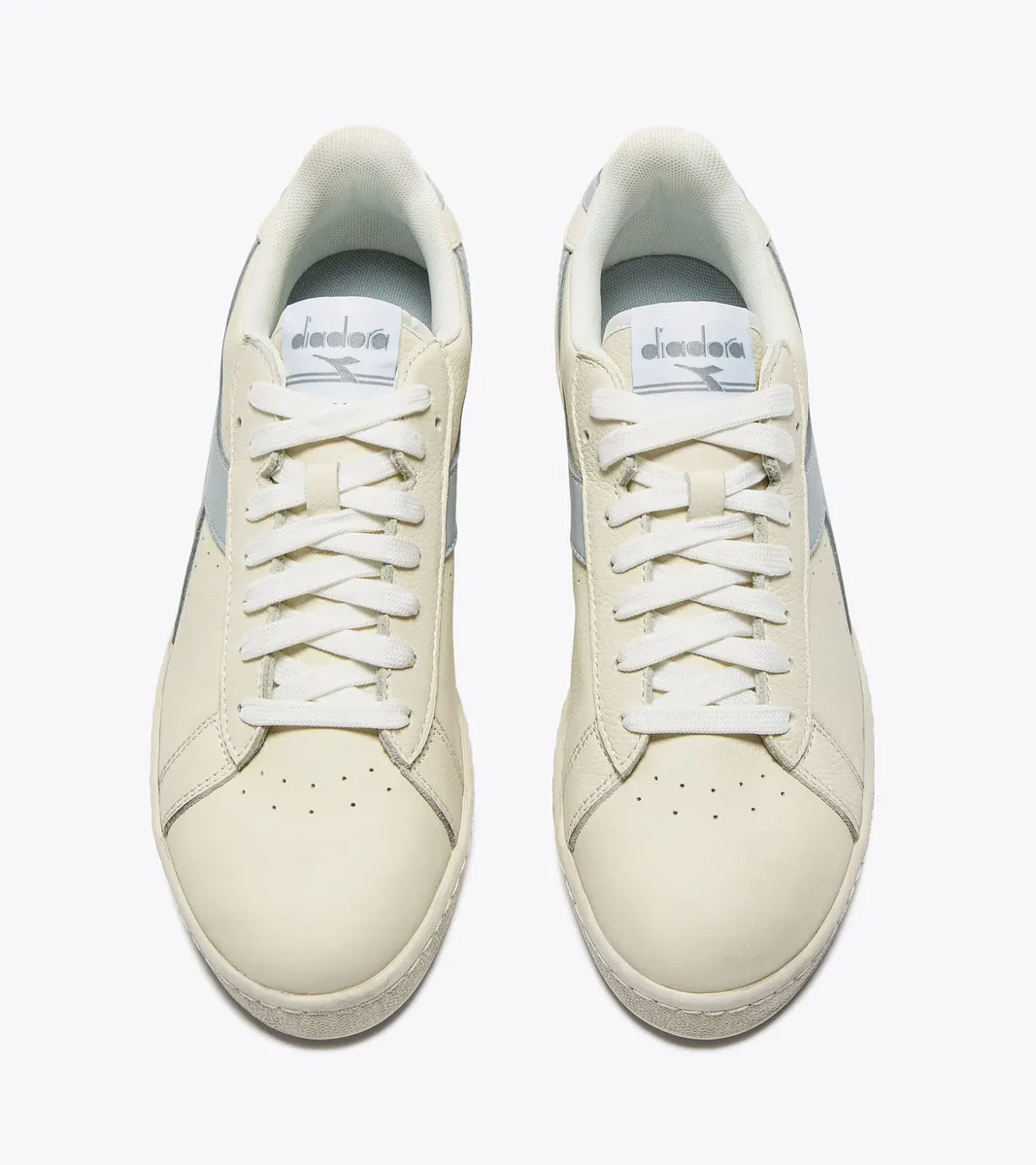 Der ikonische Game L-Stil in seiner gewagtesten Version mit einem rohen Schnitt. Dieser All-Gender-Schuh ist aus hochwertigem Leder mit einer Wachsbehandlung gefertigt. Wie alle Diadora-Ikonen besticht dieser Schuh durch eine sportliche Ästhetik und einen zeitlosen Stil, der zu jedem Anlass passt. Kontrastierendes 5-Ball-Logo und Fregio-Detail.