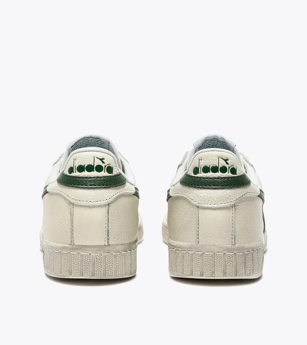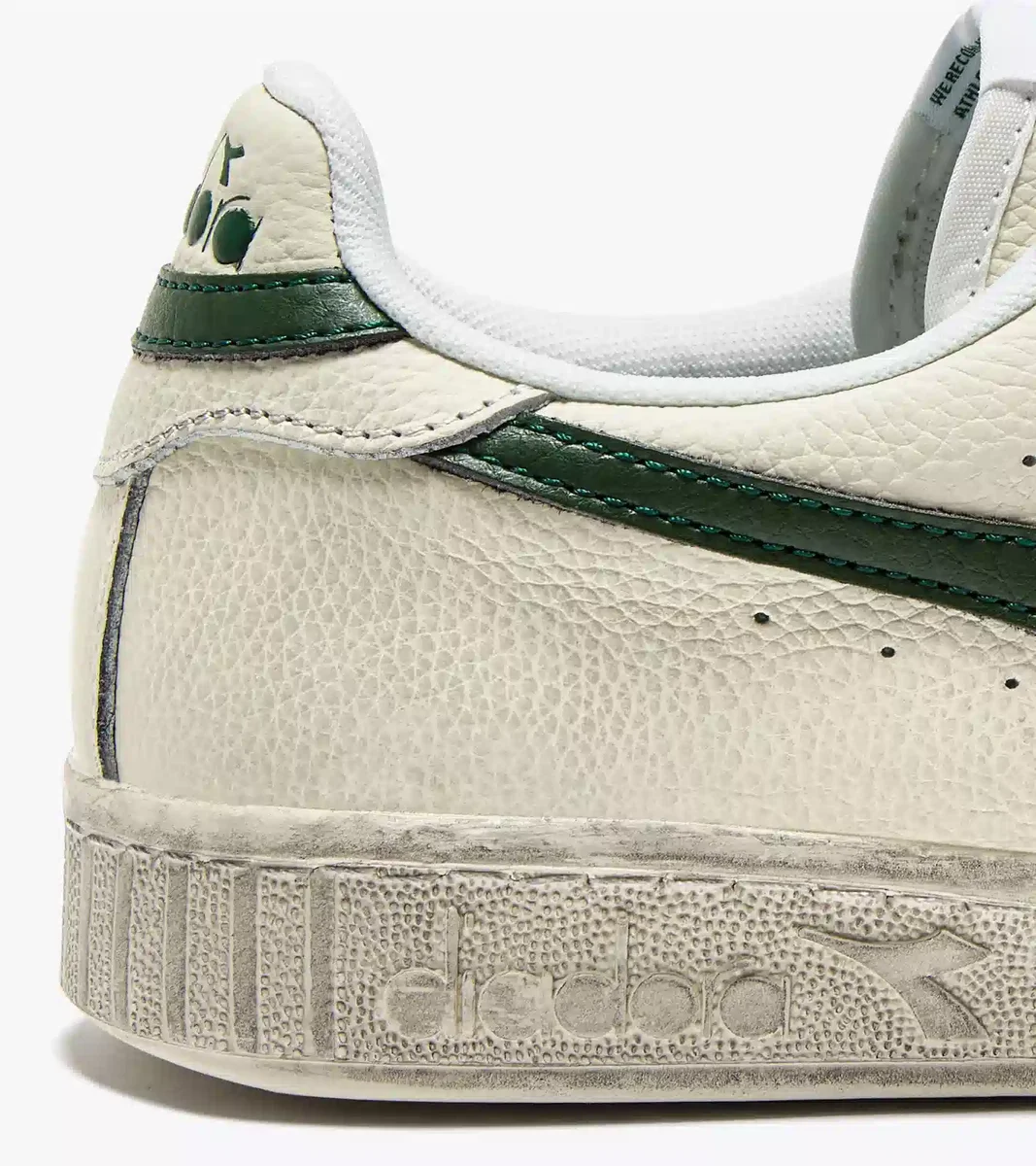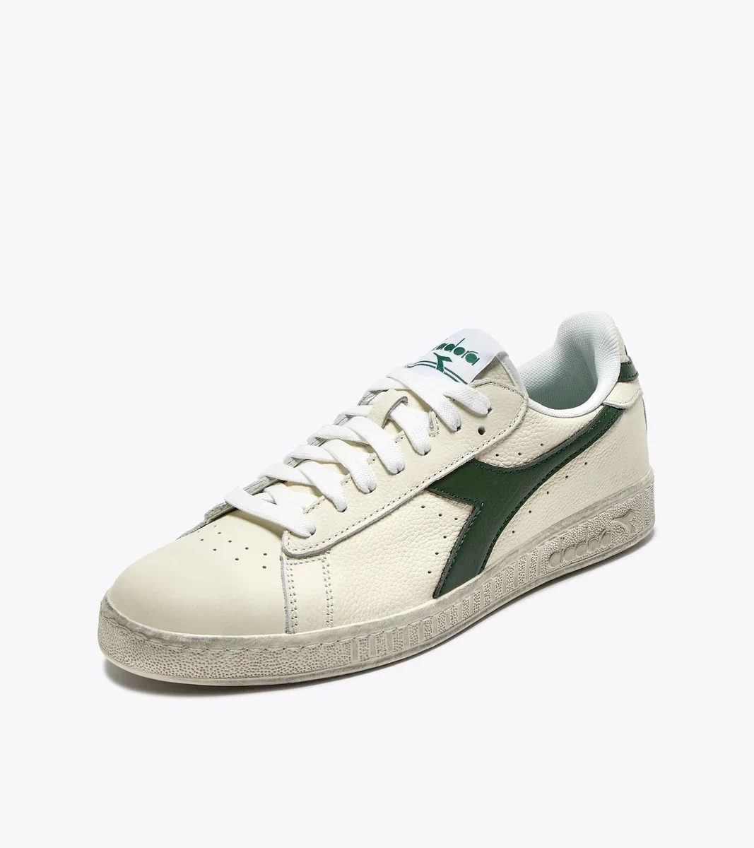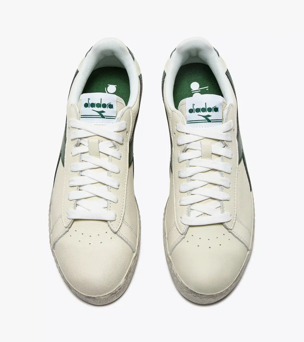 Der ikonische Game L-Stil in seiner gewagtesten Version mit einem rohen Schnitt. Dieser All-Gender-Schuh ist aus hochwertigem Leder mit einer Wachsbehandlung gefertigt. Wie alle Diadora-Ikonen besticht dieser Schuh durch eine sportliche Ästhetik und einen zeitlosen Stil, der zu jedem Anlass passt. Kontrastierendes 5-Ball-Logo und Fregio-Detail.