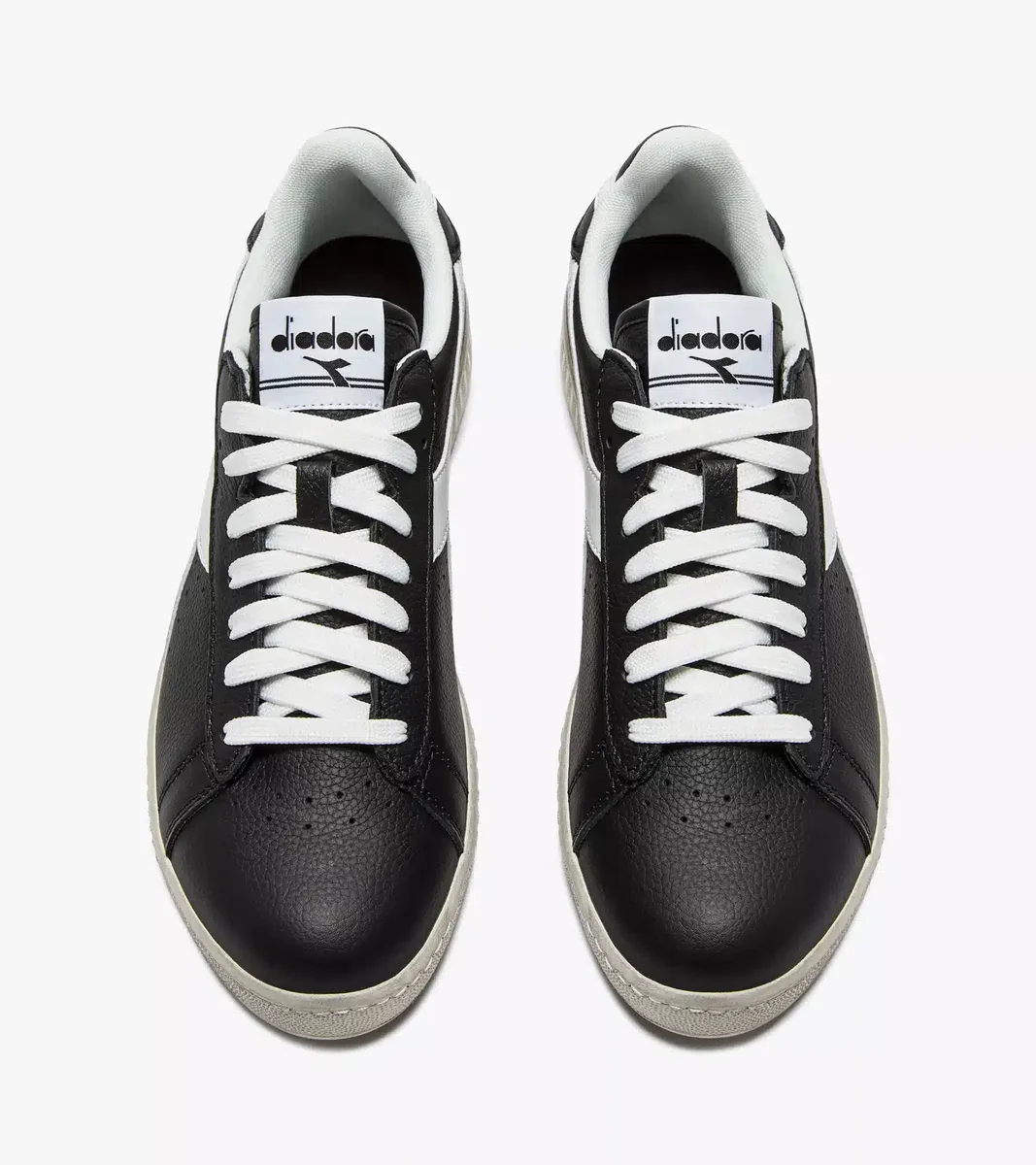 Der ikonische Game L-Stil in seiner gewagtesten Version mit einem rohen Schnitt. Dieser All-Gender-Schuh ist aus hochwertigem Leder mit einer Wachsbehandlung gefertigt. Wie alle Diadora-Ikonen besticht dieser Schuh durch eine sportliche Ästhetik und einen zeitlosen Stil, der zu jedem Anlass passt. Kontrastierendes 5-Ball-Logo und Fregio-Detail.