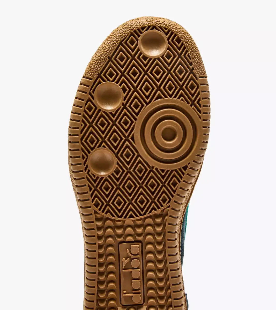 Terrassenstil der 1980er Jahre. Wie sein Pendant, der Trainer, stammt auch der Tokyo Sneaker aus den Archiven von Diadora aus den 80er Jahren und verfügt über die ikonische dicke Gummisohle, die ursprünglich für Handballschuhe dieser Zeit entworfen wurde.