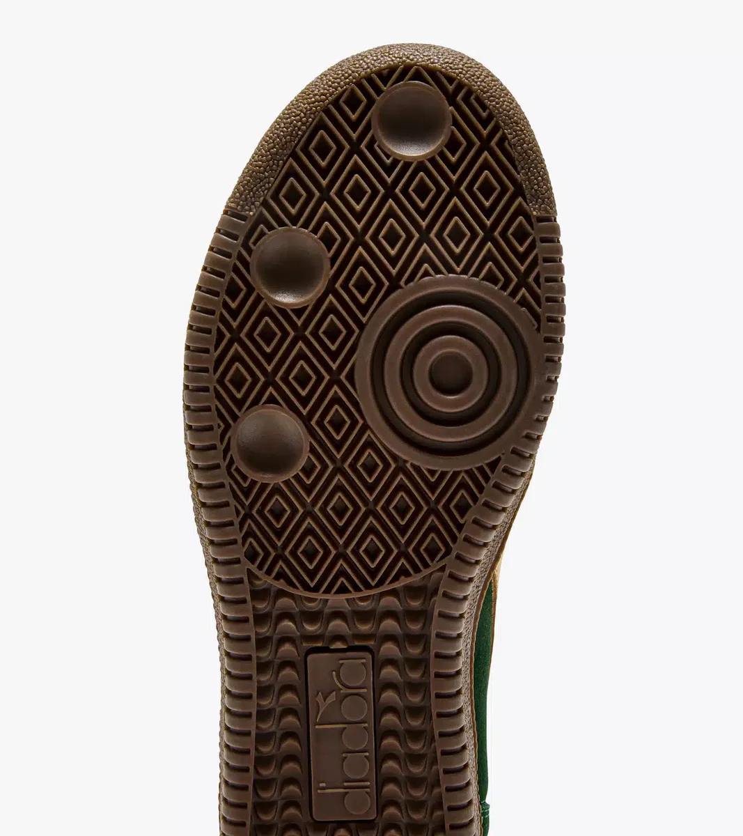 Terrassenstil der 1980er Jahre. Wie sein Pendant, der Trainer, stammt auch der Tokyo Sneaker aus den Archiven von Diadora aus den 80er Jahren und verfügt über die ikonische dicke Gummisohle, die ursprünglich für Handballschuhe dieser Zeit entworfen wurde.