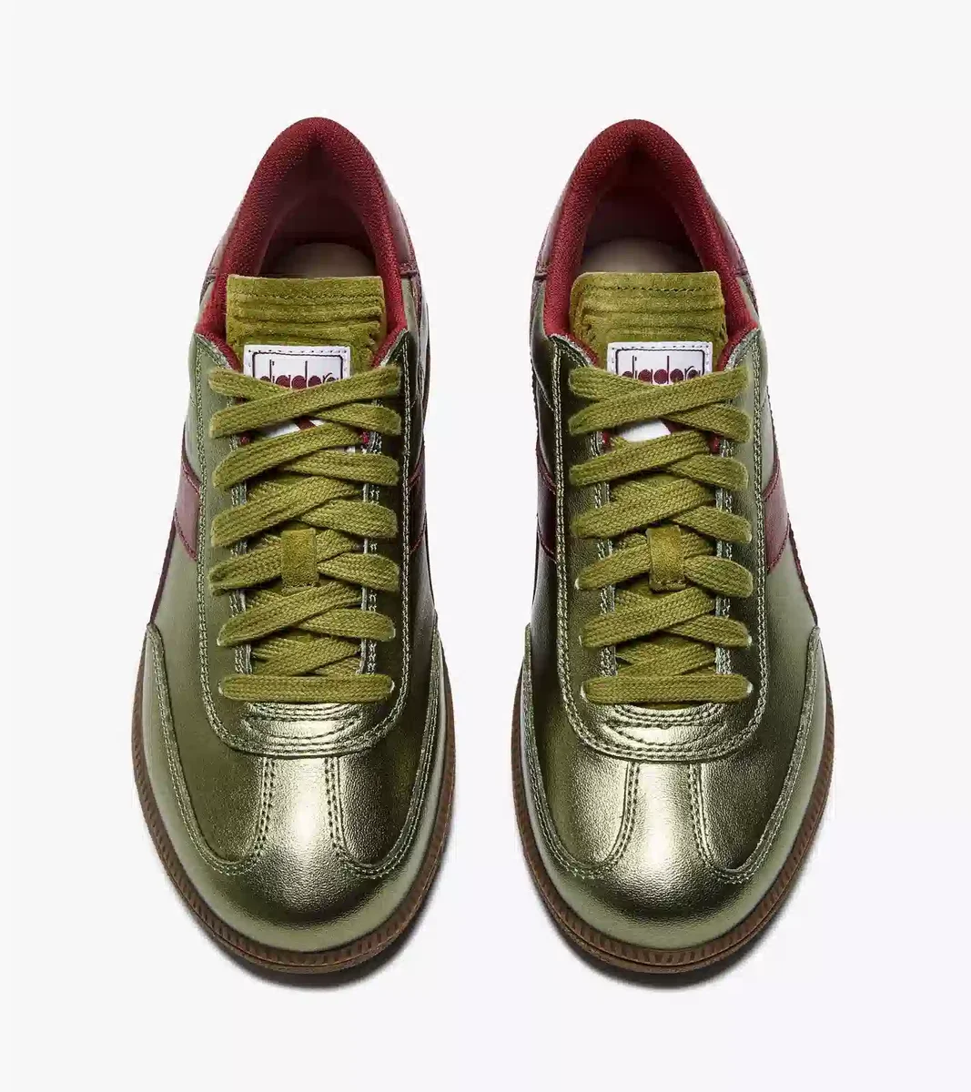 Trainer Metalized: die Version mit einem vollständig metallischen Obermaterial aus Leder und kontrastierendem Logo. Definitiv alles andere als unauffällig.