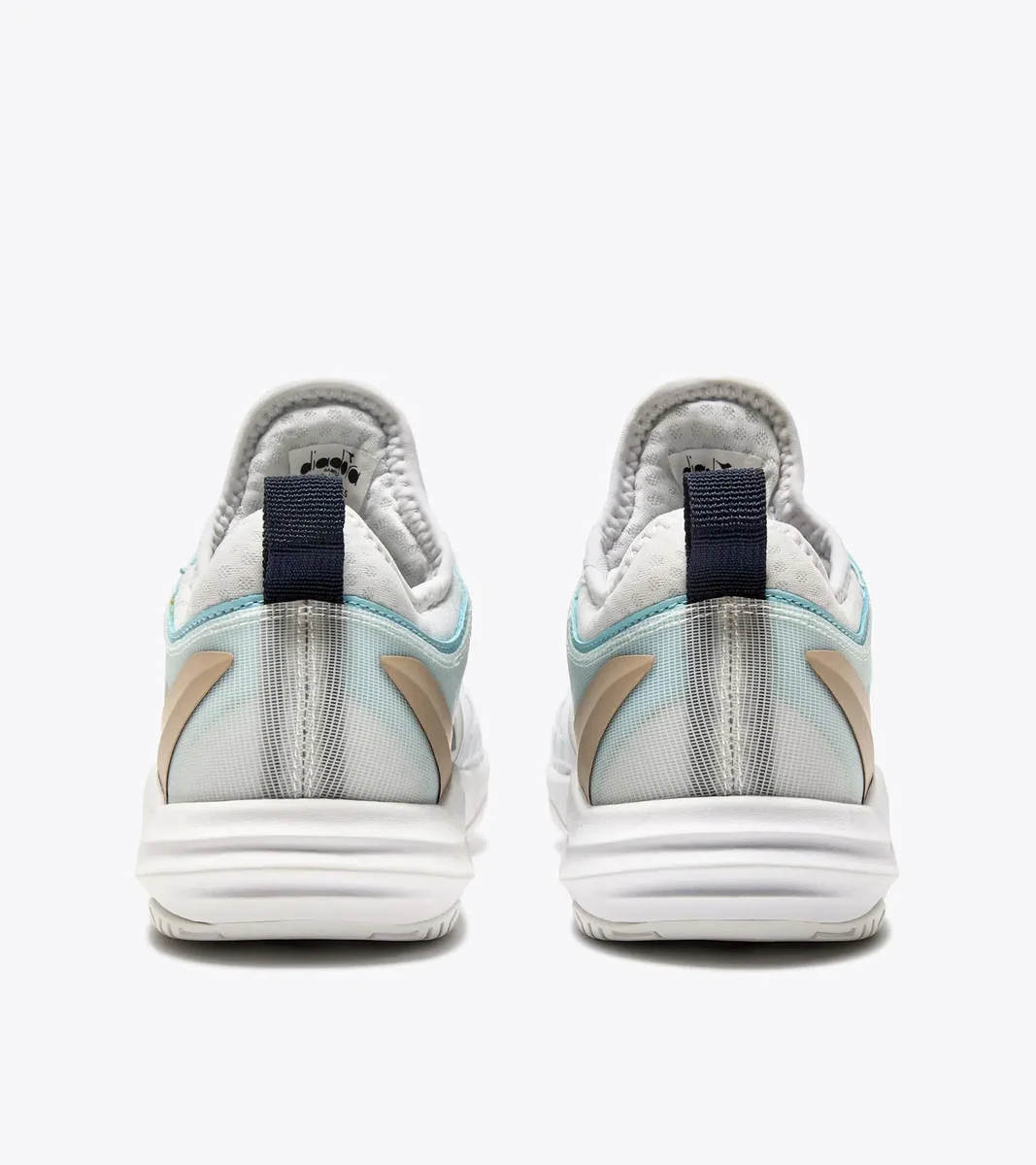 Schnelle Spielerinnen aufgepasst, dieser Schuh ist genau das Richtige für euch! Der Speed Blushield Fly 4+ W AG ist ein Tennisschuh für Damen, der speziell für schnelle Spielerinnen entwickelt wurde und auf Hartplätzen oder Sandplätzen eingesetzt werden kann. Das Obermaterial aus SuprellTech, Air Mesh und D-Skin sorgt für hervorragende Stabilität, Atmungsaktivität und Komfort und ist innen mit weichem, strukturiertem, rutschfestem Lycra gefüttert. Herausnehmbare dnattivo-Einlegesohle; Mittelsohle aus leichtem EVA und Verstärkung des Fußgewölbes für mehr Stabilität; Blushield-Technologie im Mittelfußbereich. Außensohle aus Gummi mit spezieller verschleißfester Duratech 5000-Mischung. Verwendung:
