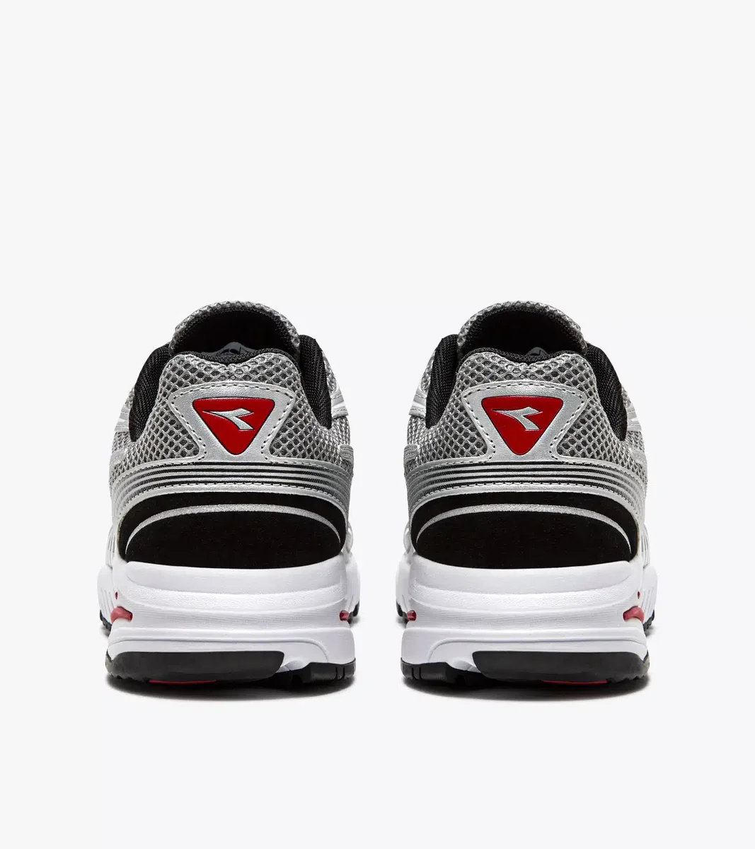Alle Elemente des Laufstils der 2000er Jahre: Obermaterial aus offenem Mesh, Design der Zwischensohle und silberne Details