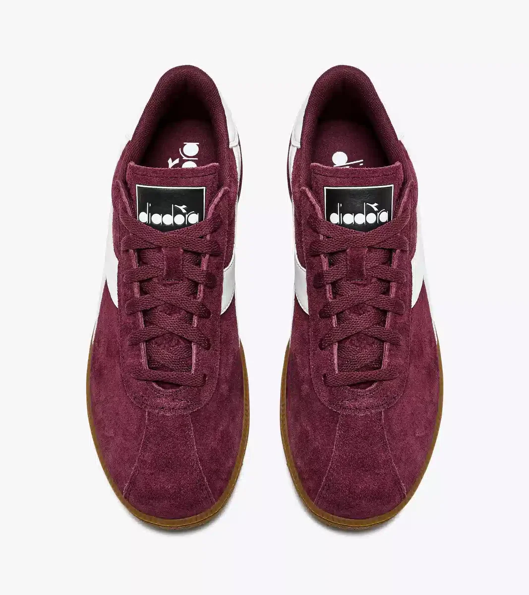 Terrassenstil der 1980er Jahre. Wie sein Pendant, der Trainer, stammt auch der Tokyo Sneaker aus den Archiven von Diadora aus den 80er Jahren und verfügt über die ikonische dicke Gummisohle, die ursprünglich für Handballschuhe dieser Zeit entworfen wurde.