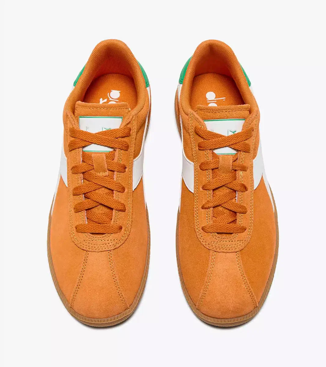 Terrassenstil der 1980er Jahre. Wie sein Pendant, der Trainer, stammt auch der Tokyo Sneaker aus den Archiven von Diadora aus den 80er Jahren und verfügt über die ikonische dicke Gummisohle, die ursprünglich für Handballschuhe dieser Zeit entworfen wurde.