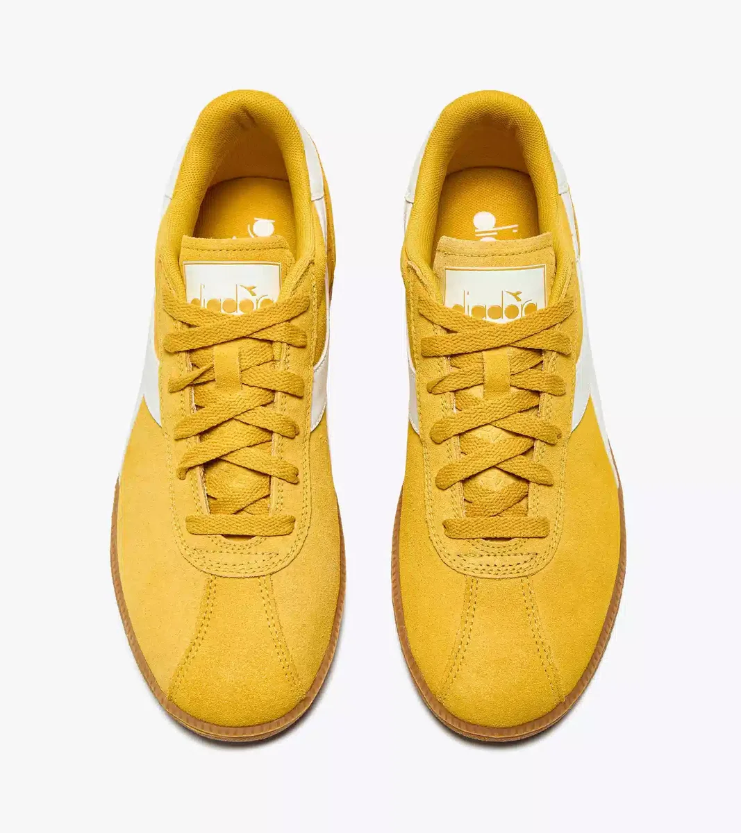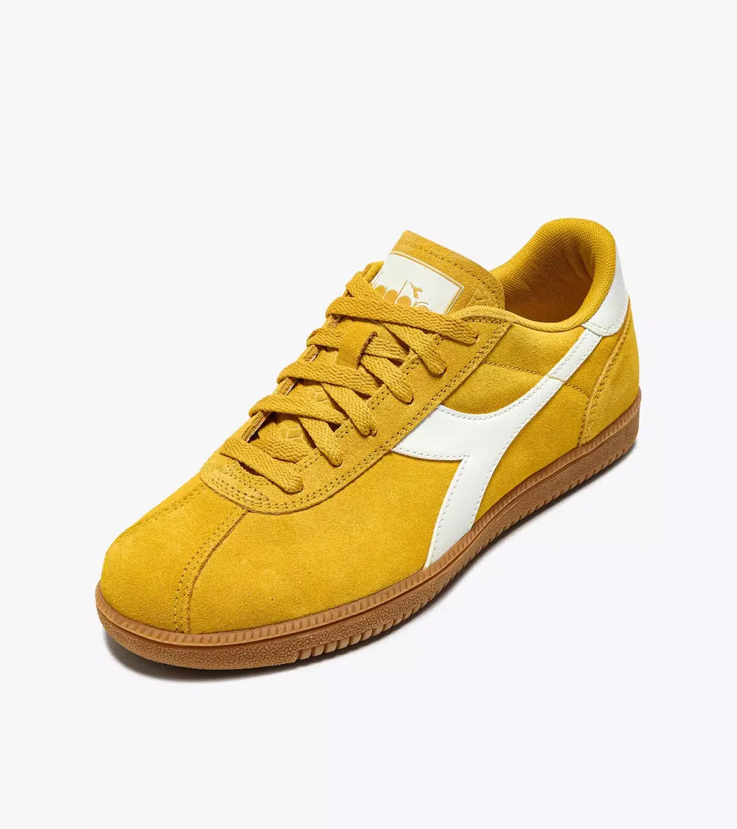 Terrassenstil der 1980er Jahre. Wie sein Pendant, der Trainer, stammt auch der Tokyo Sneaker aus den Archiven von Diadora aus den 80er Jahren und verfügt über die ikonische dicke Gummisohle, die ursprünglich für Handballschuhe dieser Zeit entworfen wurde.