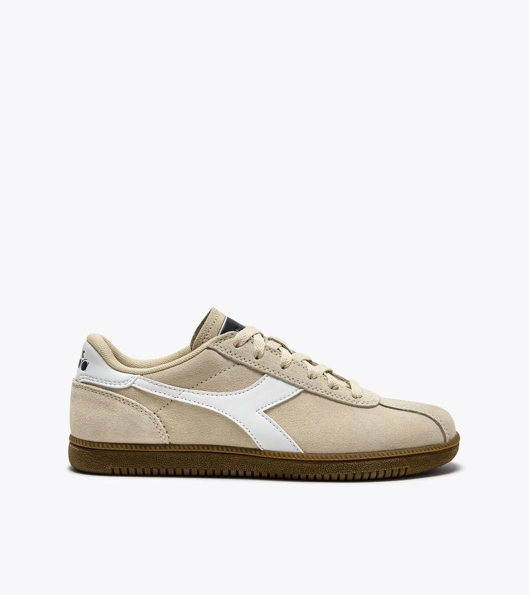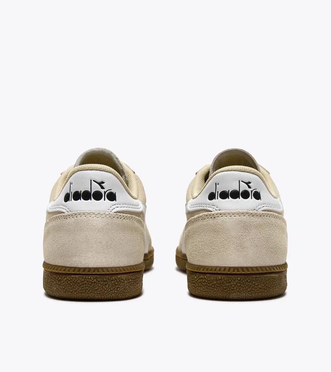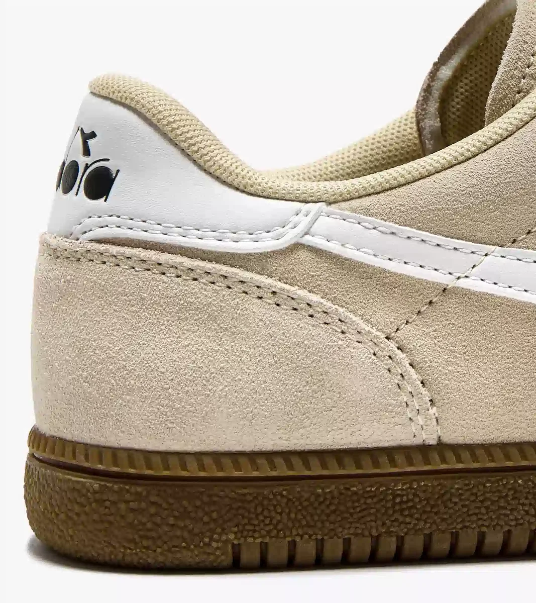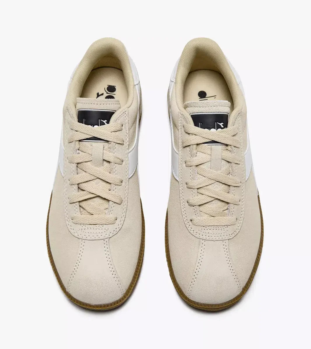 Terrassenstil der 1980er Jahre. Wie sein Pendant, der Trainer, stammt auch der Tokyo Sneaker aus den Archiven von Diadora aus den 80er Jahren und verfügt über die ikonische dicke Gummisohle, die ursprünglich für Handballschuhe dieser Zeit entworfen wurde.
