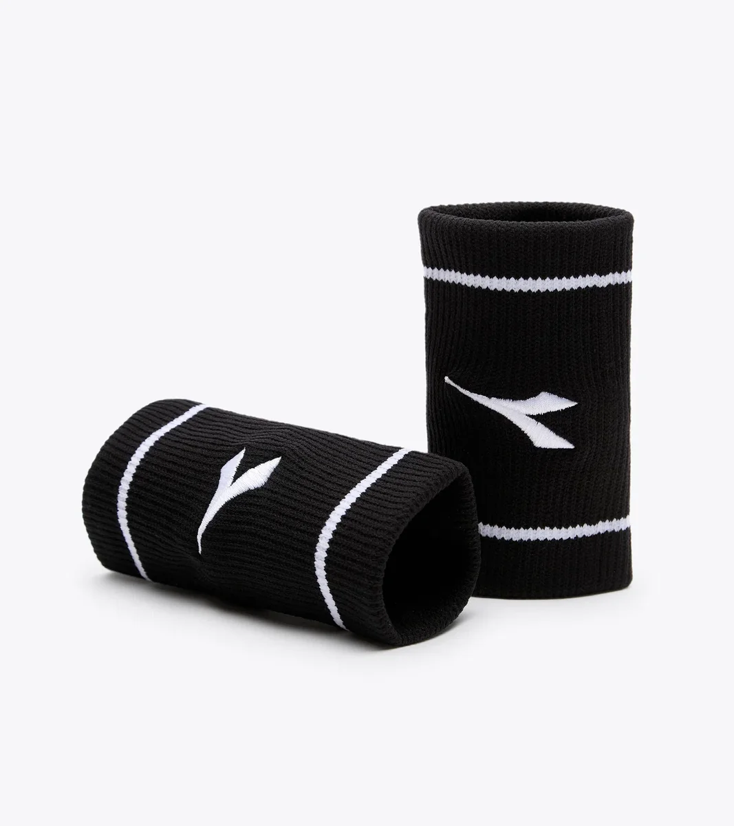 Breite Unisex-Schweißbänder, das perfekte Accessoire für Ihre Tennismatches. Aus Nylongarn, mit kontrastierender Stickerei und dem ikonischen Diadora-Fregio-Detail. Erhältlich in Rot und Schwarz.