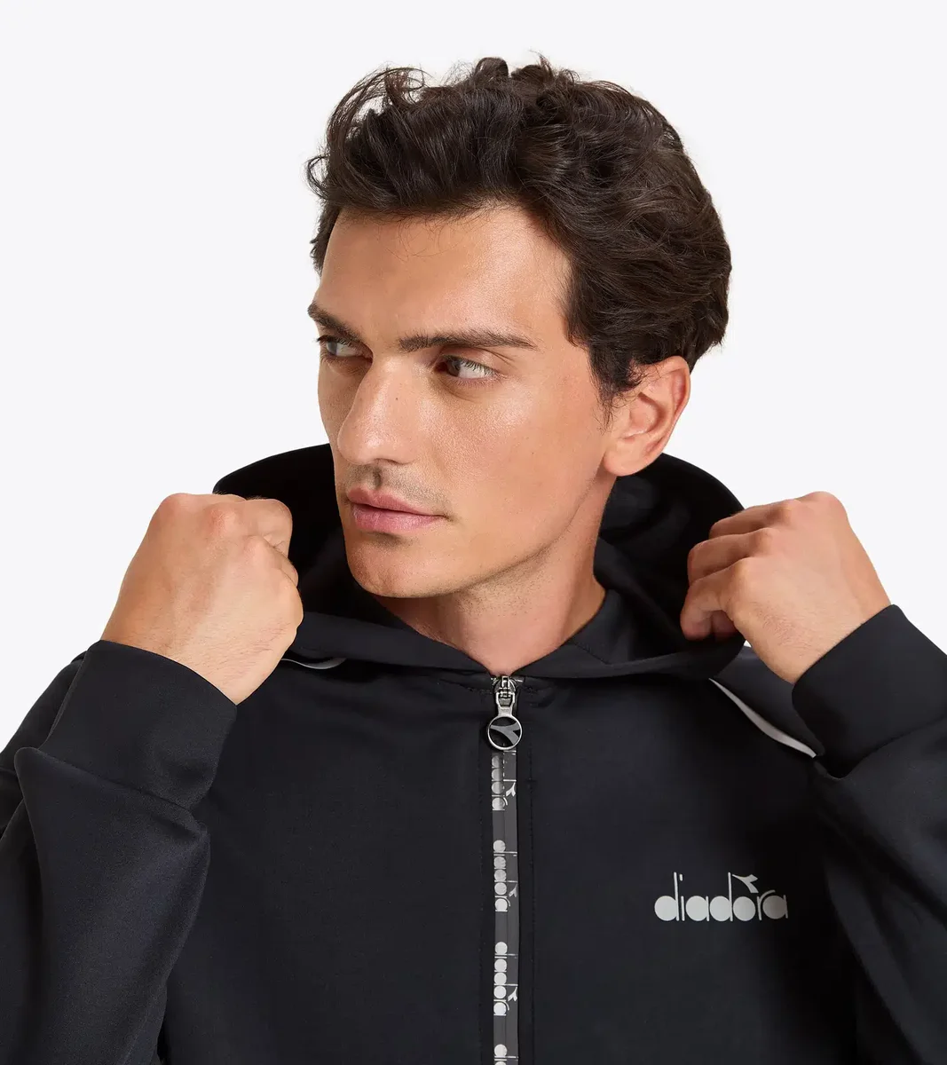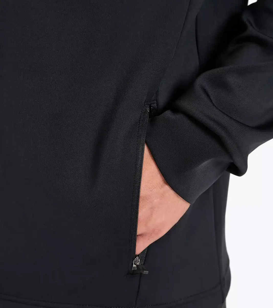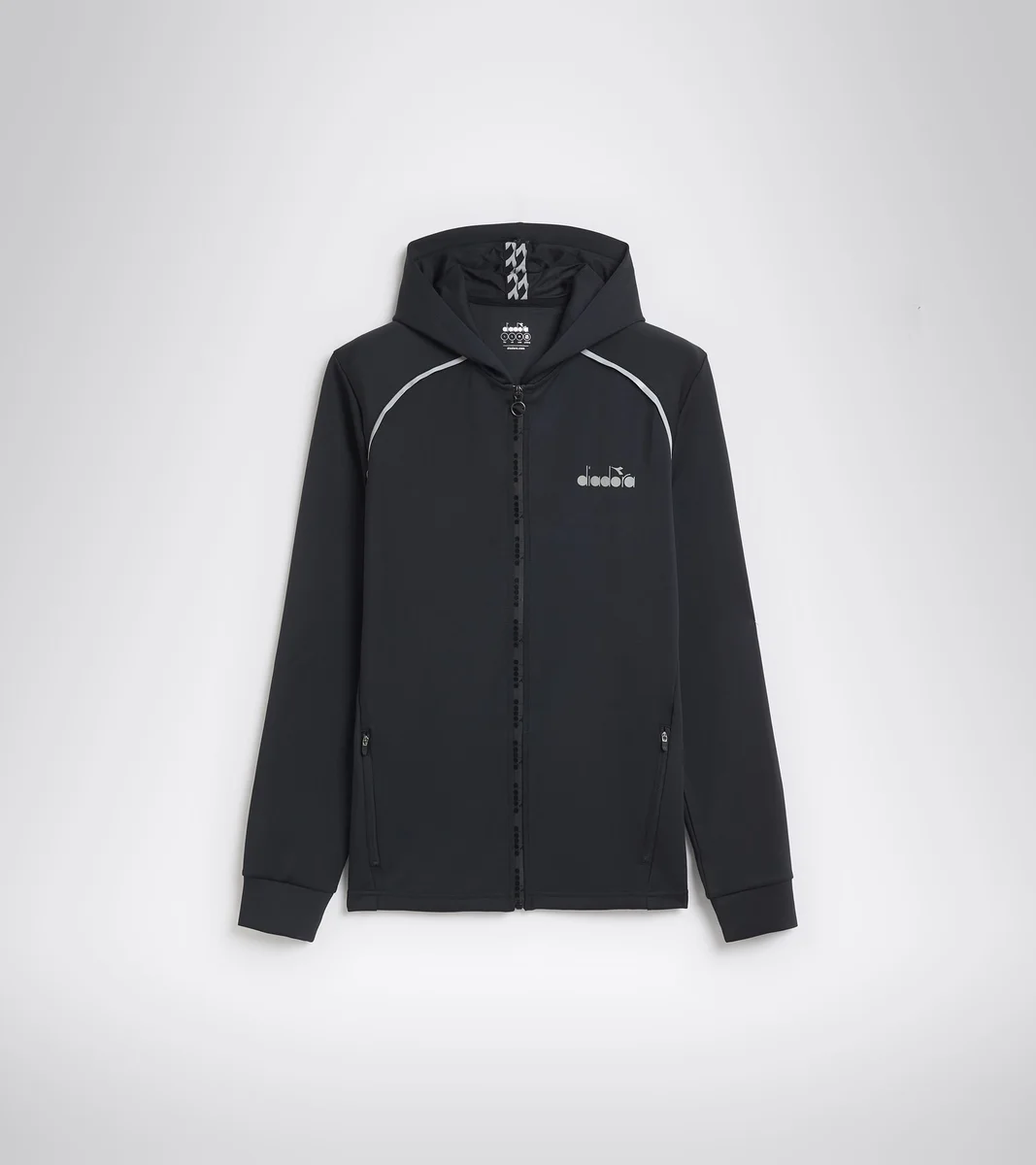 Das HD FZ Sweat Be One ist ein Herren-Laufsweatshirt mit Kapuze und durchgehendem Reißverschluss aus weichem Polyestergewebe. Das Futter der Kapuze sorgt für einen Kontrast und das Markenband rundet das Design ab.
