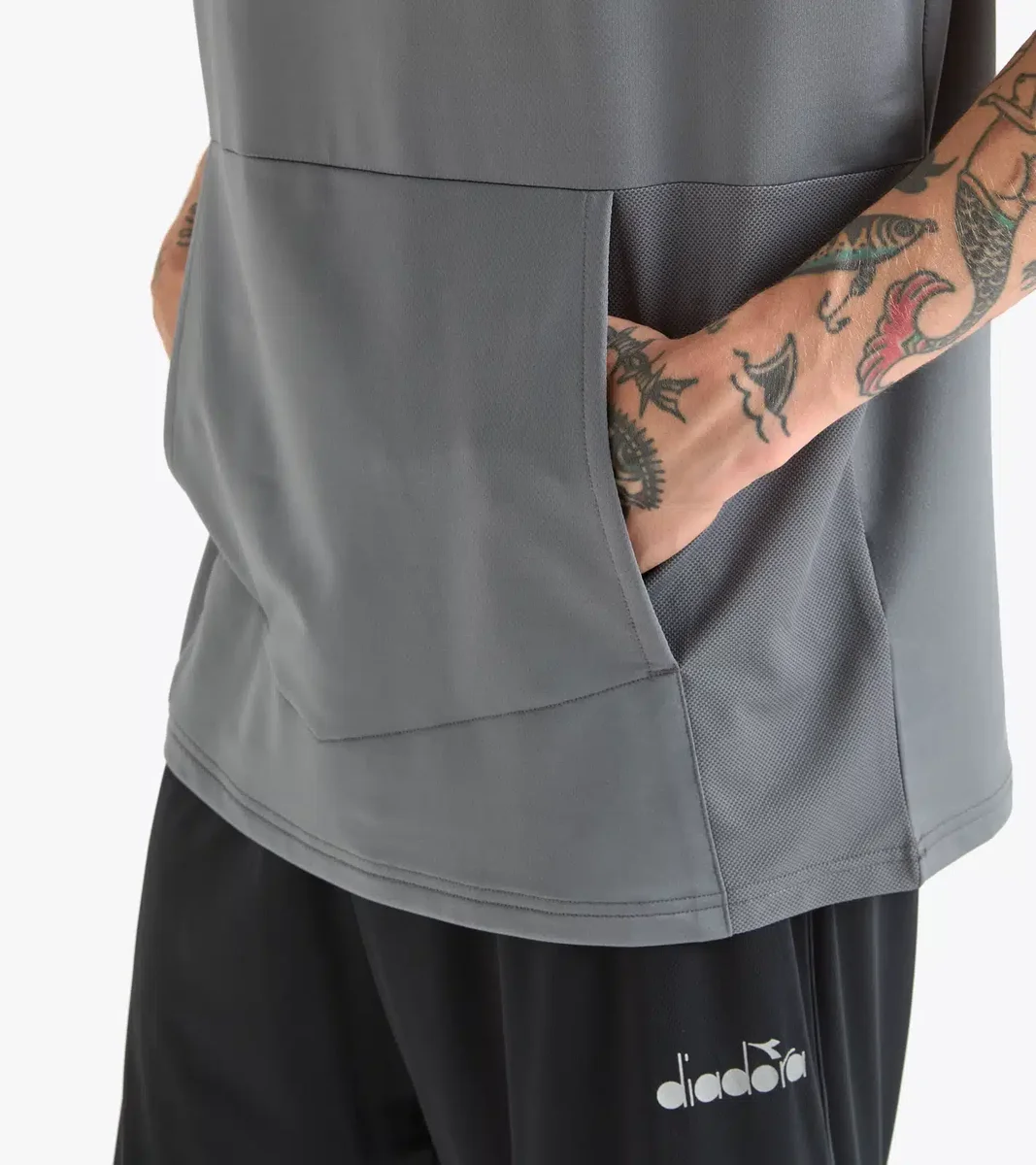 Es besteht aus weichem Stretch-Polyester mit einer 3D-Struktur auf der Innenseite, die die Haut jederzeit trocken hält, und verfügt über die Diadora Dia Dry-Technologie, eine Kängurutasche, Mesh-Seiteneinsätze und reflektierende Logos. Perfekt für Lagenlooks.