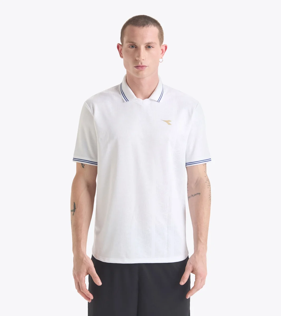 Fangen Sie die Energie der 90er Jahre mit dem Match Shirt Scudetto ein. Inspiriert von den Diadora Calcio-Trikots aus dieser Zeit, mit einem knopflosen Polokragen für erhöhten Komfort und kontrastierenden Streifen. Dieser klassische Stil setzt sich bis zu den Ärmelbündchen fort und verleiht dem Spielfeld einen zeitlosen Look. Hergestellt aus Polyester und Jacquard-Stoff, einzigartig durch kontrastierende Logos und grafische Elemente.