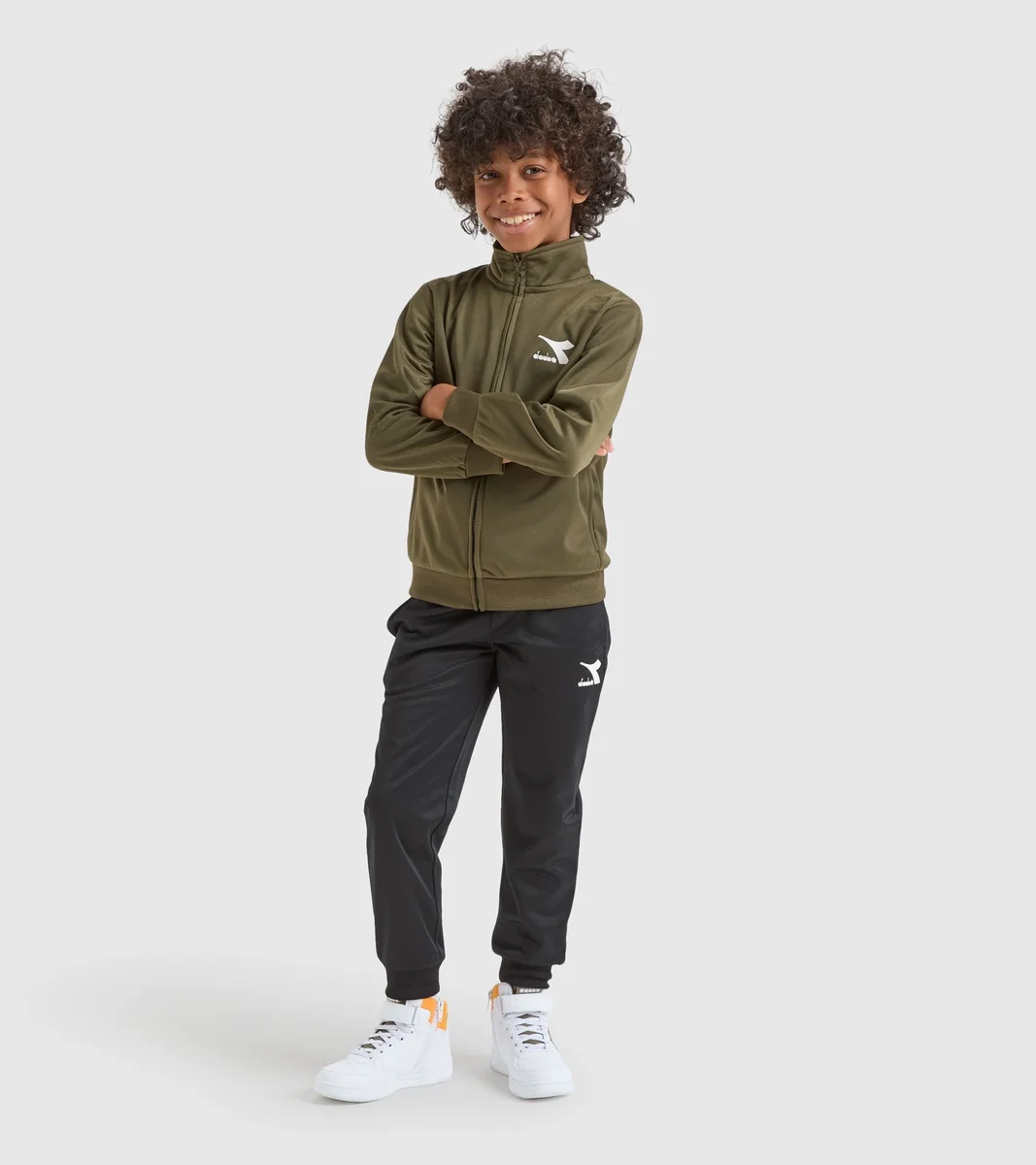 Sportliche Ästhetik und ikonischer Stil sind die richtigen Adjektive, um den JU. Trainingsanzug FZ Chromia zu beschreiben. Dieser Unisex-Trainingsanzug aus Polytricot für Jungen und Mädchen ist ein sportliches Outfit, das ikonischen Stil mit einer regulären Passform verbindet. Sweatshirt mit zentralem Reißverschluss und Hose mit verstellbarem Kordelzug in der Taille und dem Diadora-Fregio auf der Vorderseite.