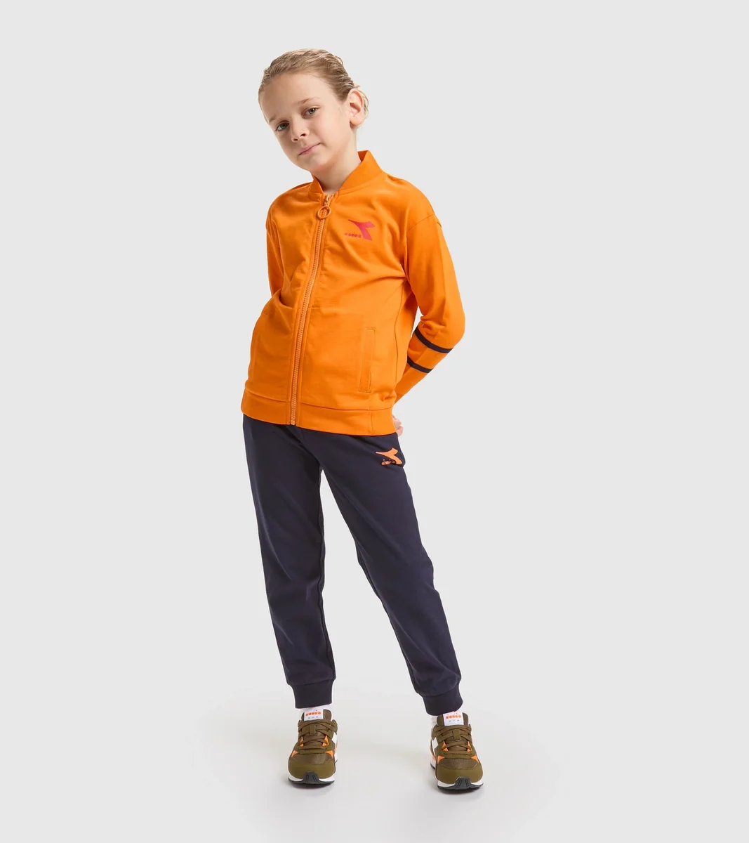 Sportliche Ästhetik, wechselnde Farben und eine normale Passform machen diesen Unisex-Trainingsanzug für Kinder zu einem Kleidungsstück, das Sie Ihrer Garderobe für einen Stadtbummel oder ein spontanes Training hinzufügen möchten.