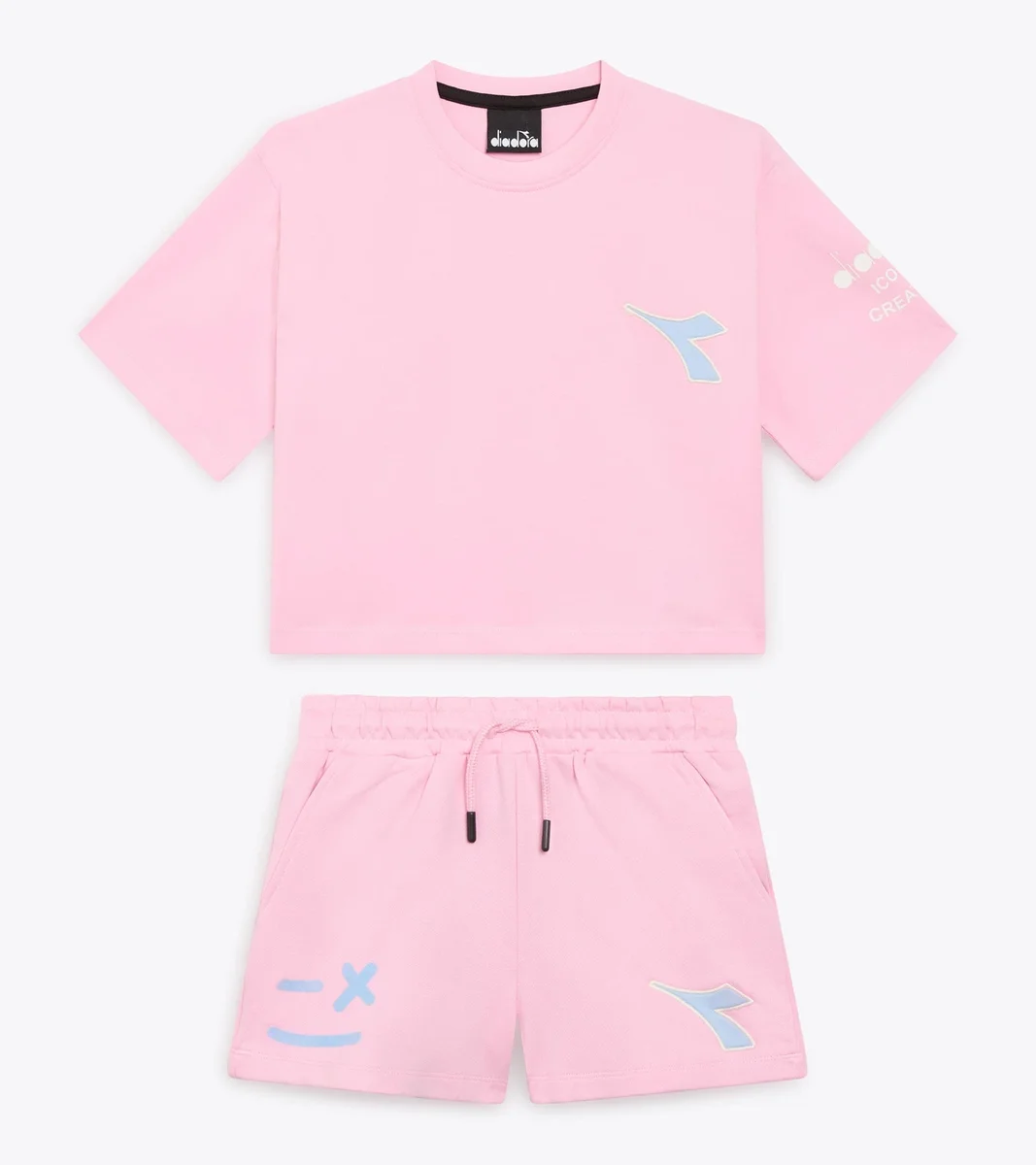 Ein lässiges Outfit für Mädchen, bestehend aus einem kurzen T-Shirt und Shorts mit Stretchbund. Ein vielseitiges und leichtes Outfit ist genau das, was du für kurze Ausflüge oder Abenteuer mit dem Rucksack brauchst!