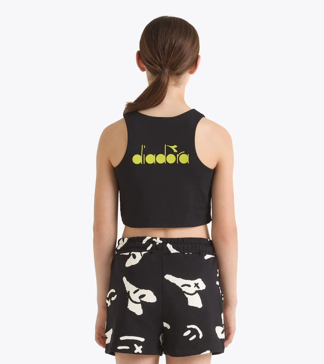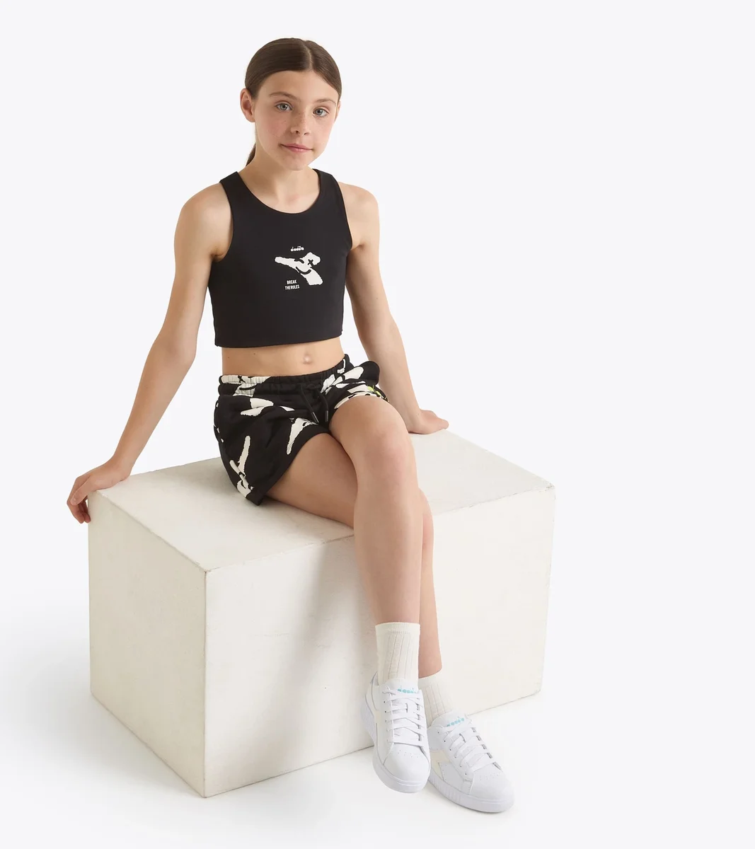 Bequemes und dehnbares Crop Top für Mädchen, verziert mit kontrastierenden Logo-Details. Vergessen Sie Ablenkungen: Mit diesem Sport-Top bleibt Ihre Konzentration jederzeit hoch.