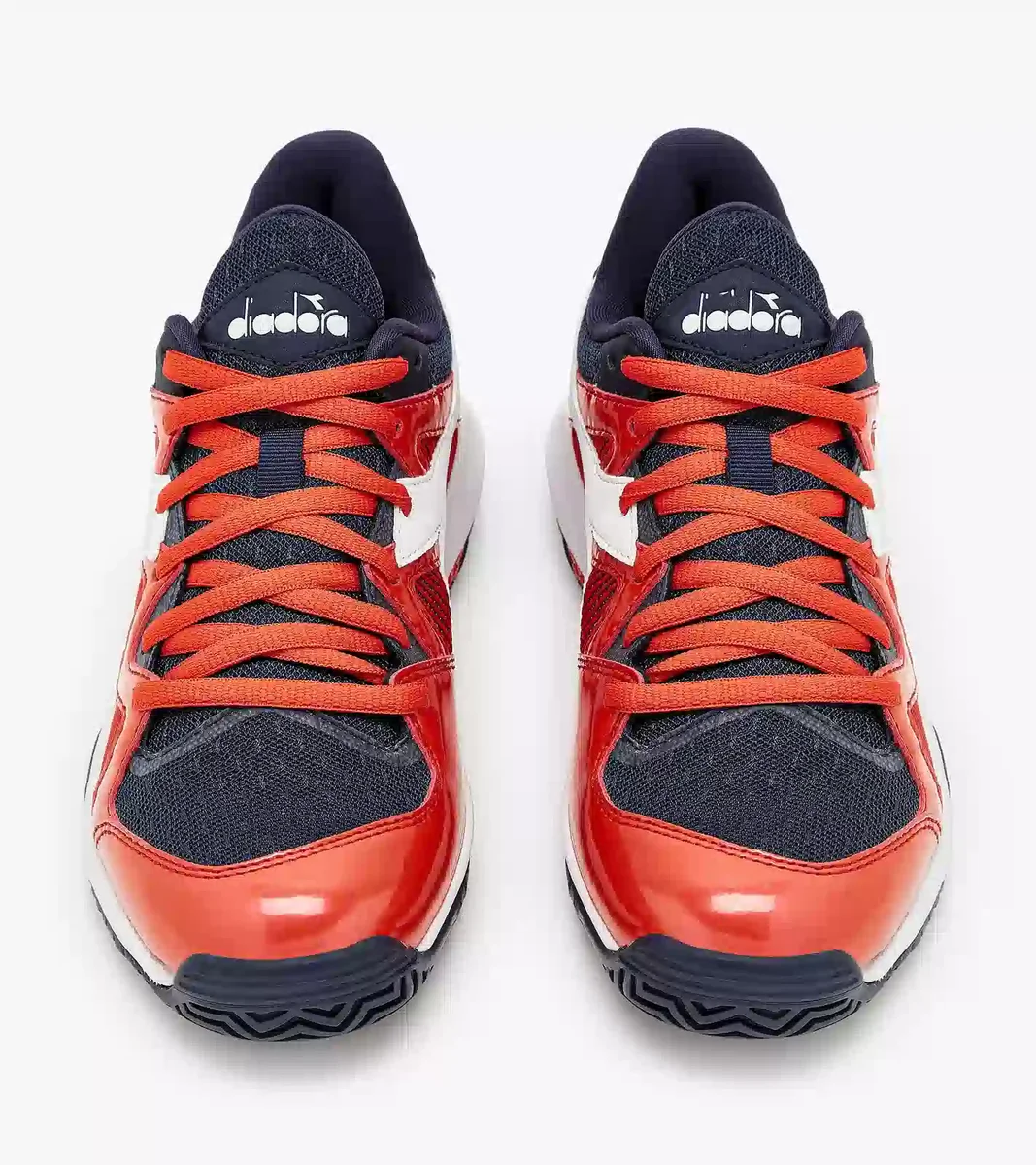 Junior-Tennisschuh mit SuprellTech und Air-Mesh-Obermaterial für hervorragende Stabilität. Die Einlegesohle ist herausnehmbar und besteht aus stoßfestem EVA-Schaumstoff, während die Sohle aus verschleißfestem Duratech 5000-Verbundmaterial gefertigt ist. Perfekt für Hartplätze und/oder Sandplätze.