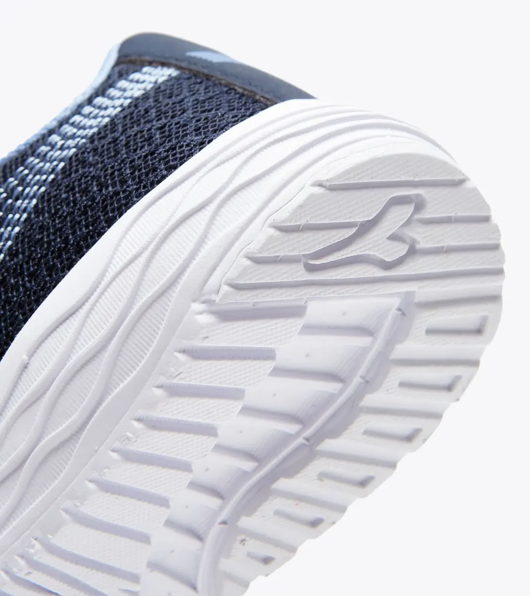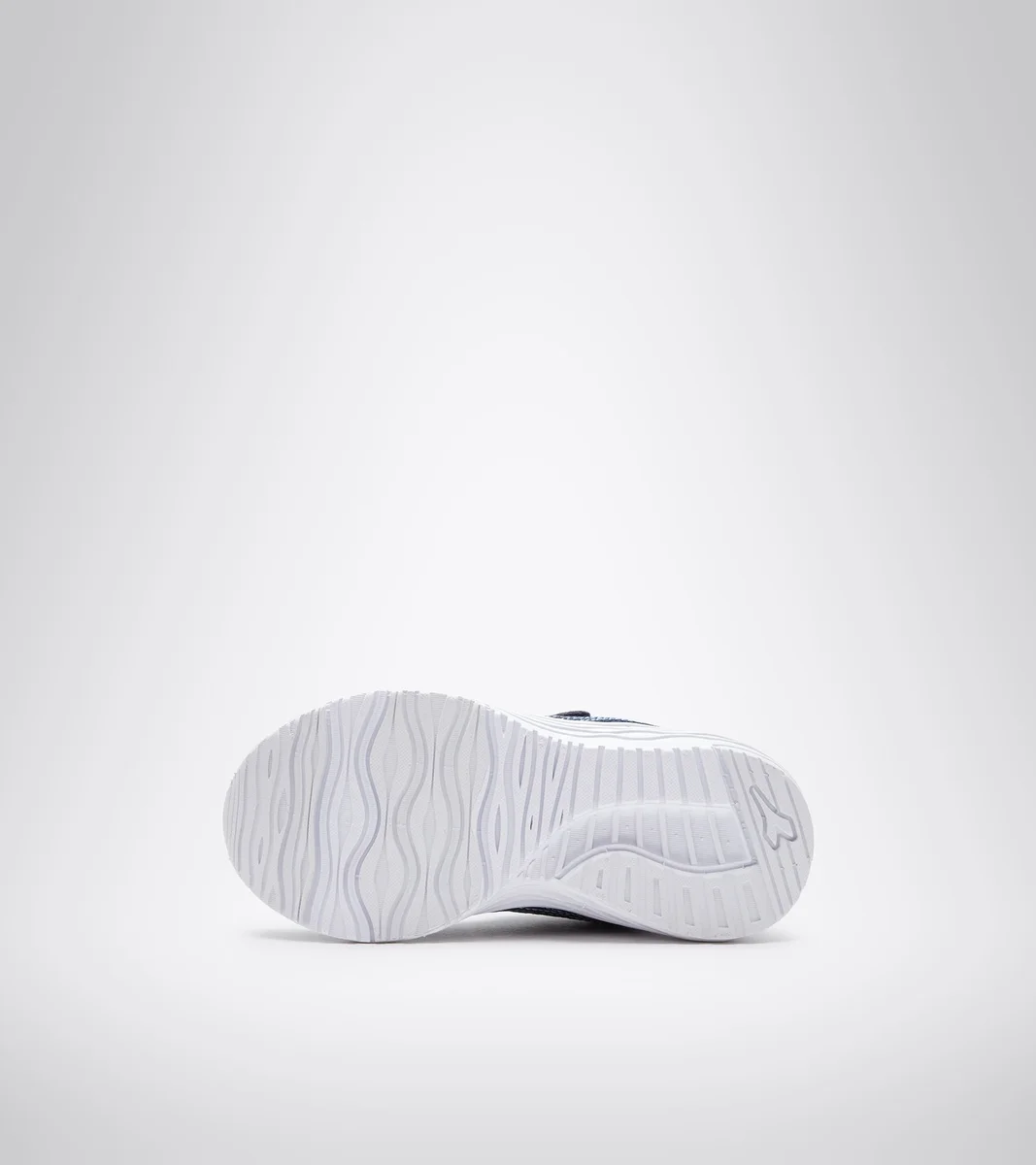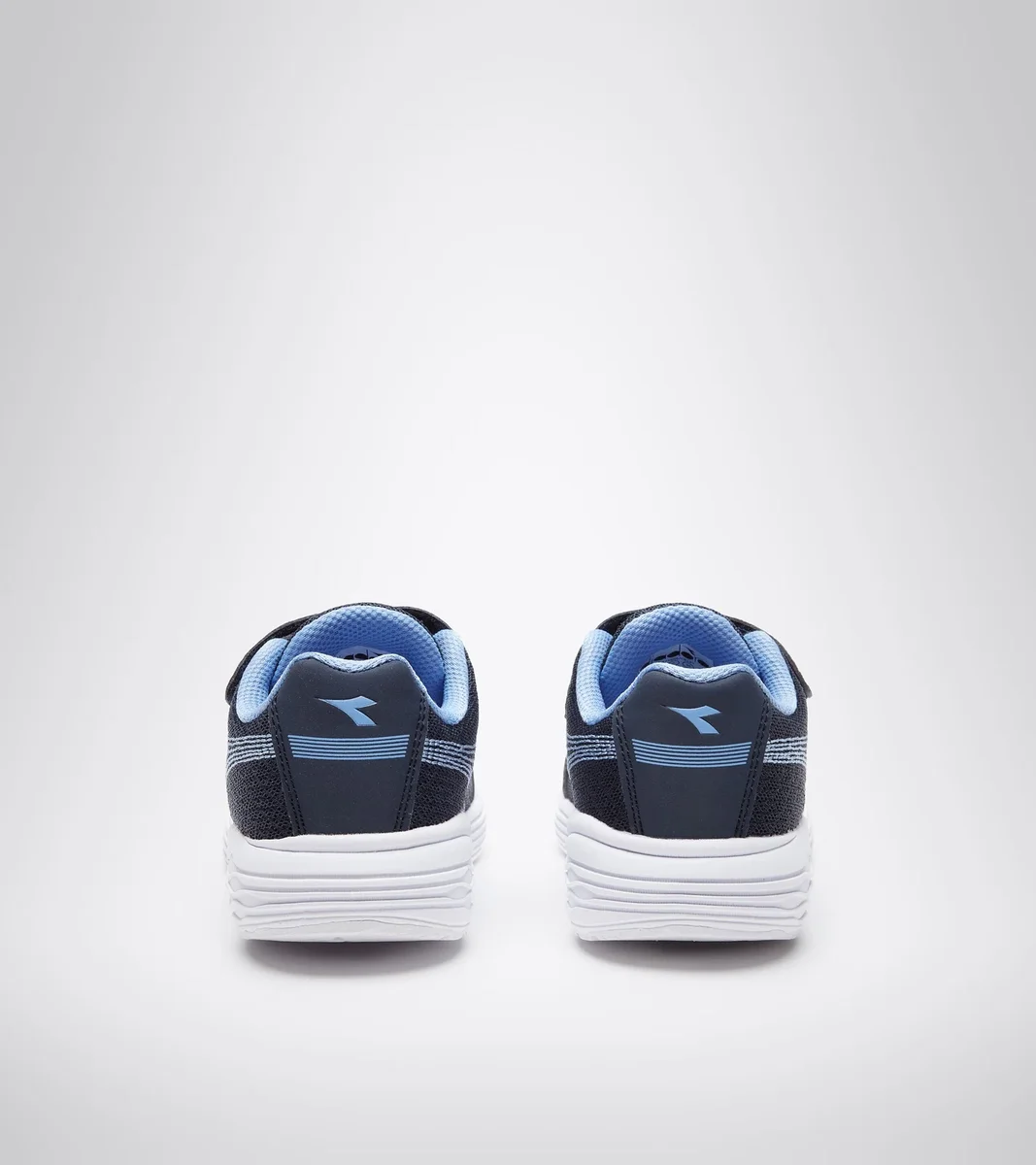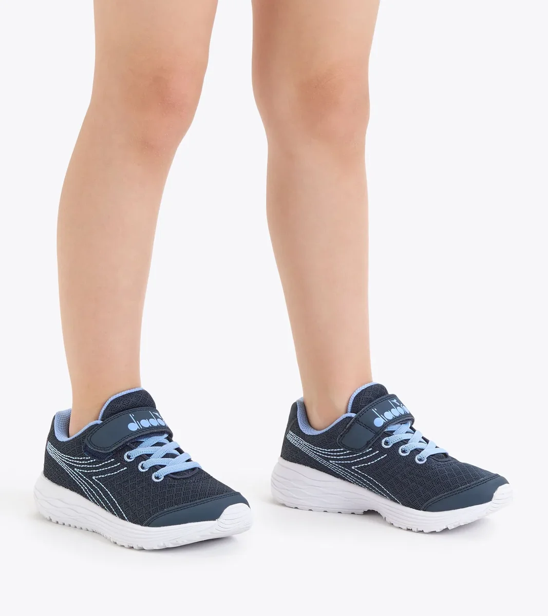 Unisex-Laufschuh für Kinder mit Obermaterial aus Nylon-Mesh und Suprellsoft. Elastische Schnürung und Klettverschluss sowie Fußbett aus Baumwolljersey und stoßdämpfendem EVA-Schaumstoff auf einer Gummisohle.