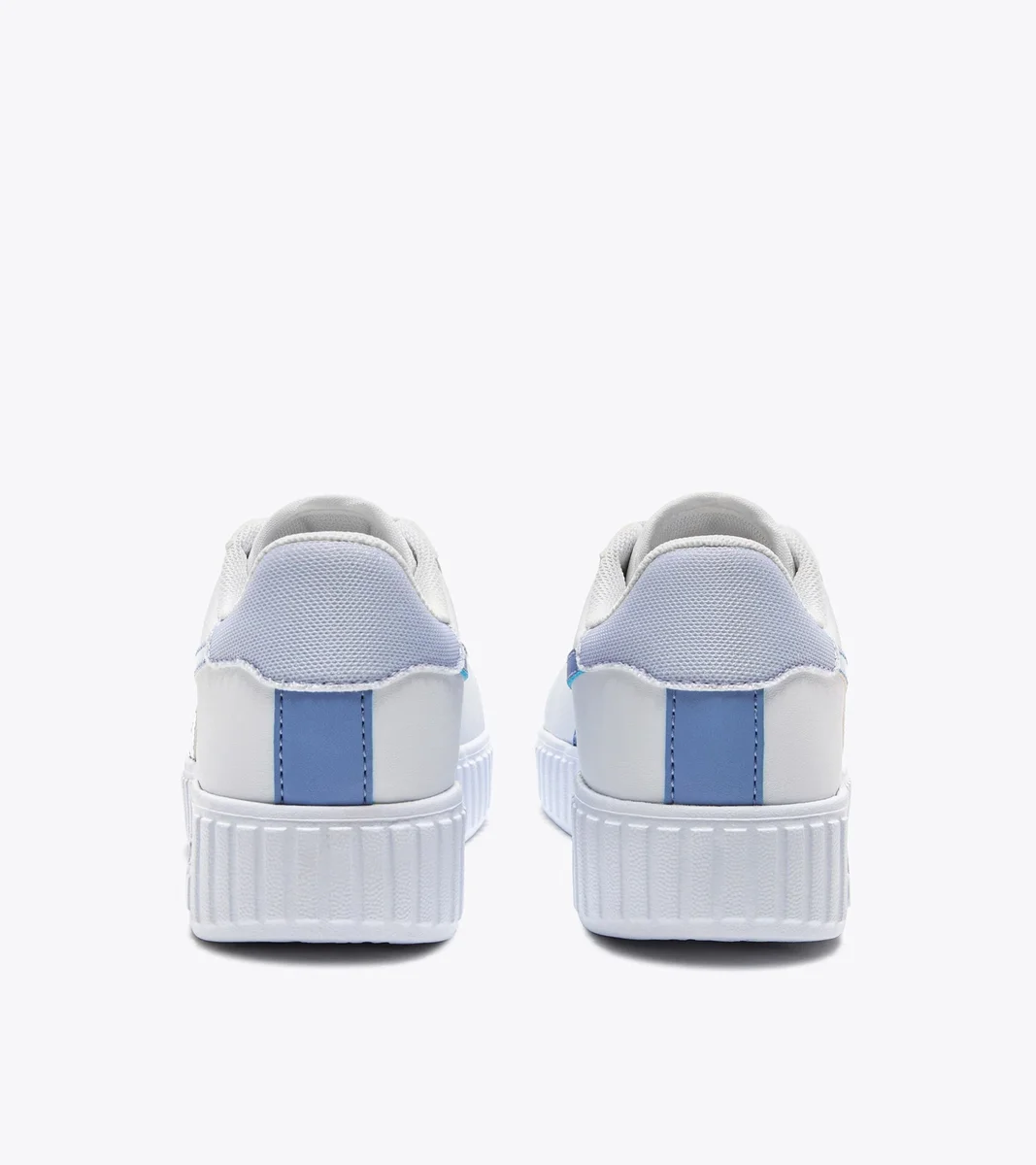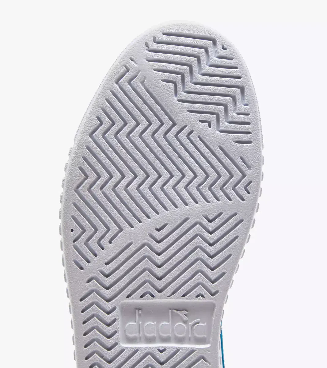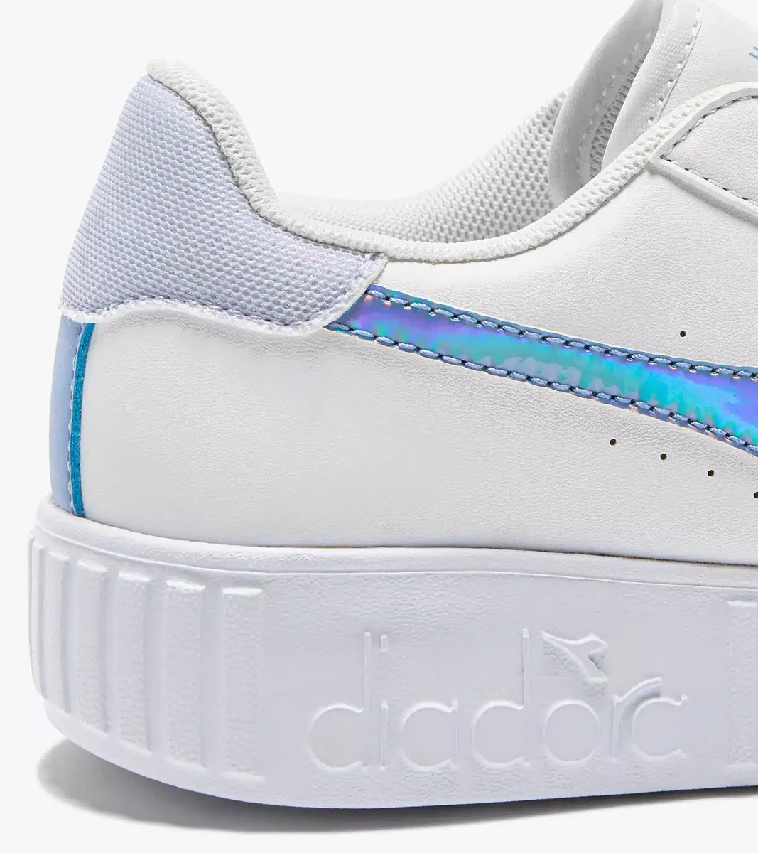 Der kultigste Sneaker von Diadora für Teenager erhält einen kühnen neuen Twist. Diesmal sind es Details mit Glitzer-Spiegeleffekt, die die Regeln des klassischen weißen Sneakers brechen. Die charakteristische erhöhte Sohle des Low-Top-Modells Game? Immer noch da, auffälliger denn je.